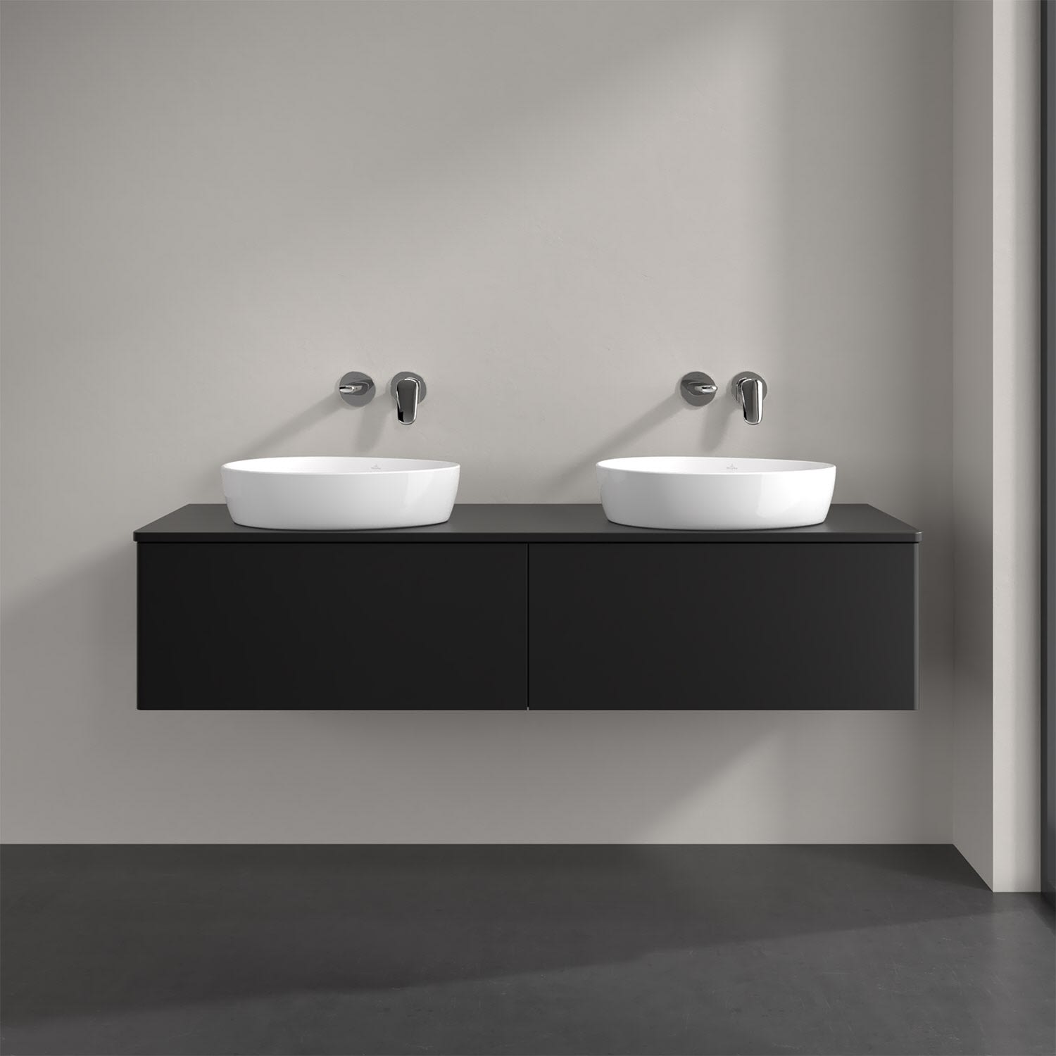 Villeroy & Boch Antao Waschbeckenunterschrank, 160 x 36 cm, 2 Auszüge, Front ohne Struktur, mit Hahnloch, für Waschtisch links und rechts