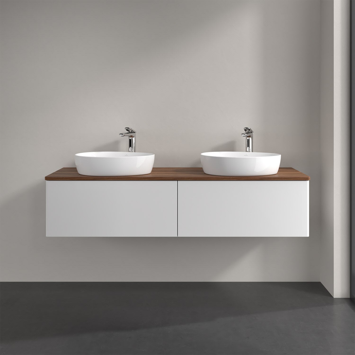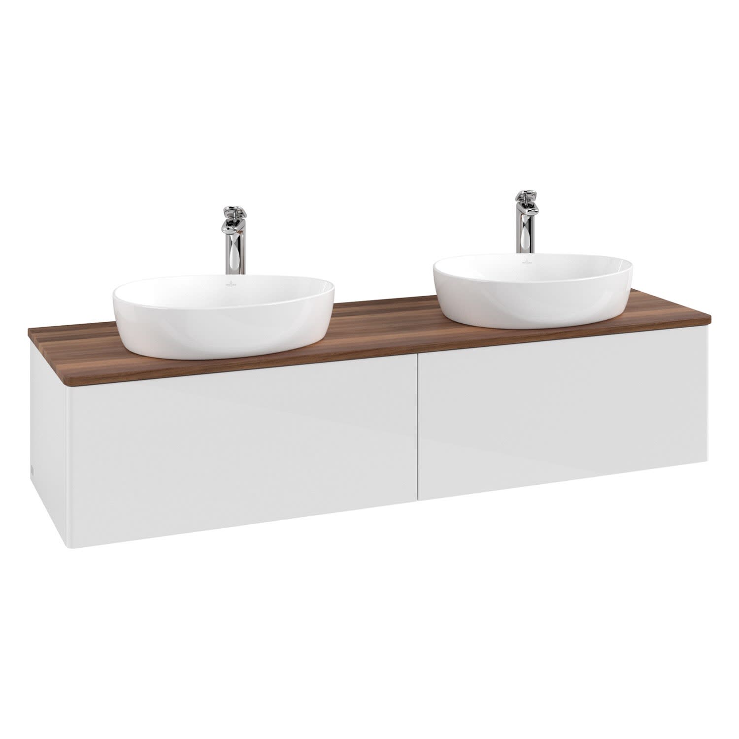 Der wandhängende Antao Waschtischunterschrank für zwei Aufsatzwaschtische bietet mit seinen beiden extra hohen Auszügen und seiner erstaunlichen Größe viel Platz zum Verstauen von Utensilien im Badezimmer. Inspiriert von der Natur überzeugt der Unterschrank auch optisch mit sanfter Formsprache und abgerundete Kanten. Die grifflosen Auszüge sind mit der Push-to-Open Funktion ausgestattet und verfügen über einen Antirutschboden, damit Utensilien sicher verstaut werden können. Mit seiner Vollauszug- und Selbsteinzug-Funktion ist der Schrank praktisch und leicht zu bedienen. Qualität von Villeroy & Boch! Für eine besonders leichte Pflege sorgt die mehrschichtig deckend lackierte Oberfläche. Bei der Ausführung in Massivholz wird dank des verarbeiteten Massivholzes jedes Möbel zu einem Unikat, das sich durch das lebendige Naturmaterial durch seine einzigartige Struktur und Maserung auszeichnet.