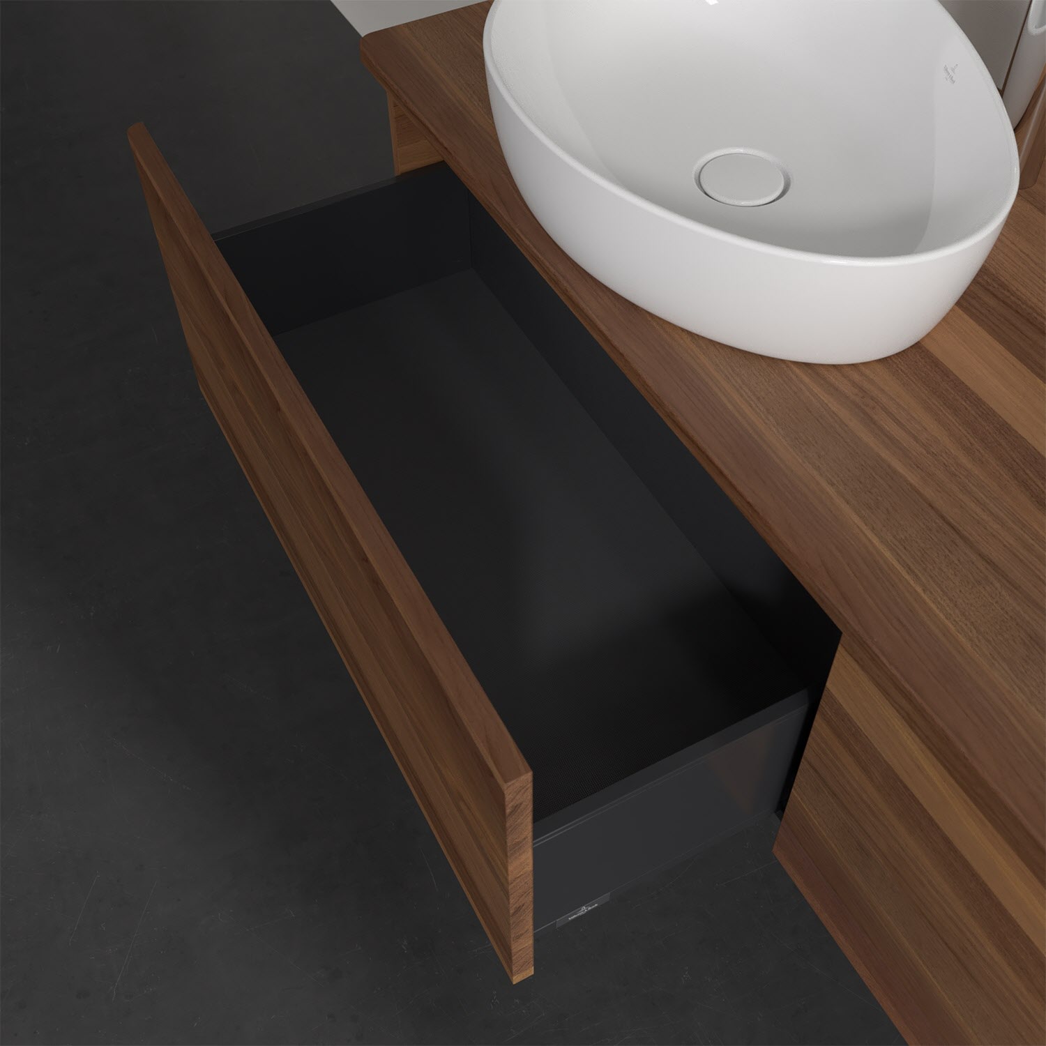 Villeroy & Boch Antao Waschbeckenunterschrank, 160 x 36 cm, 2 Auszüge, Front ohne Struktur, mit Hahnloch, für Waschtisch links und rechts