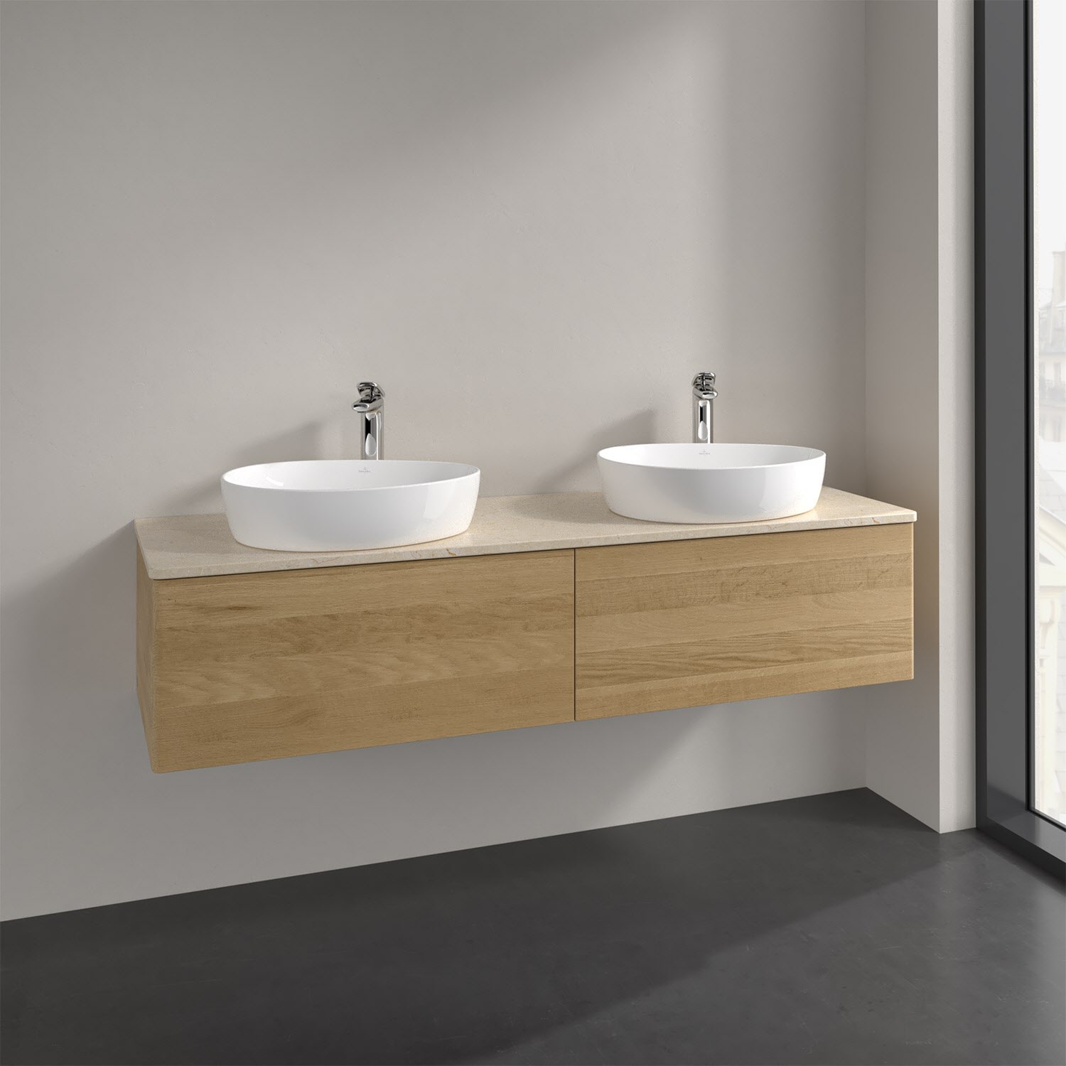 Villeroy & Boch Antao Waschbeckenunterschrank, 160 x 36 cm, 2 Auszüge, Front ohne Struktur, mit Hahnloch, für Waschtisch links und rechts