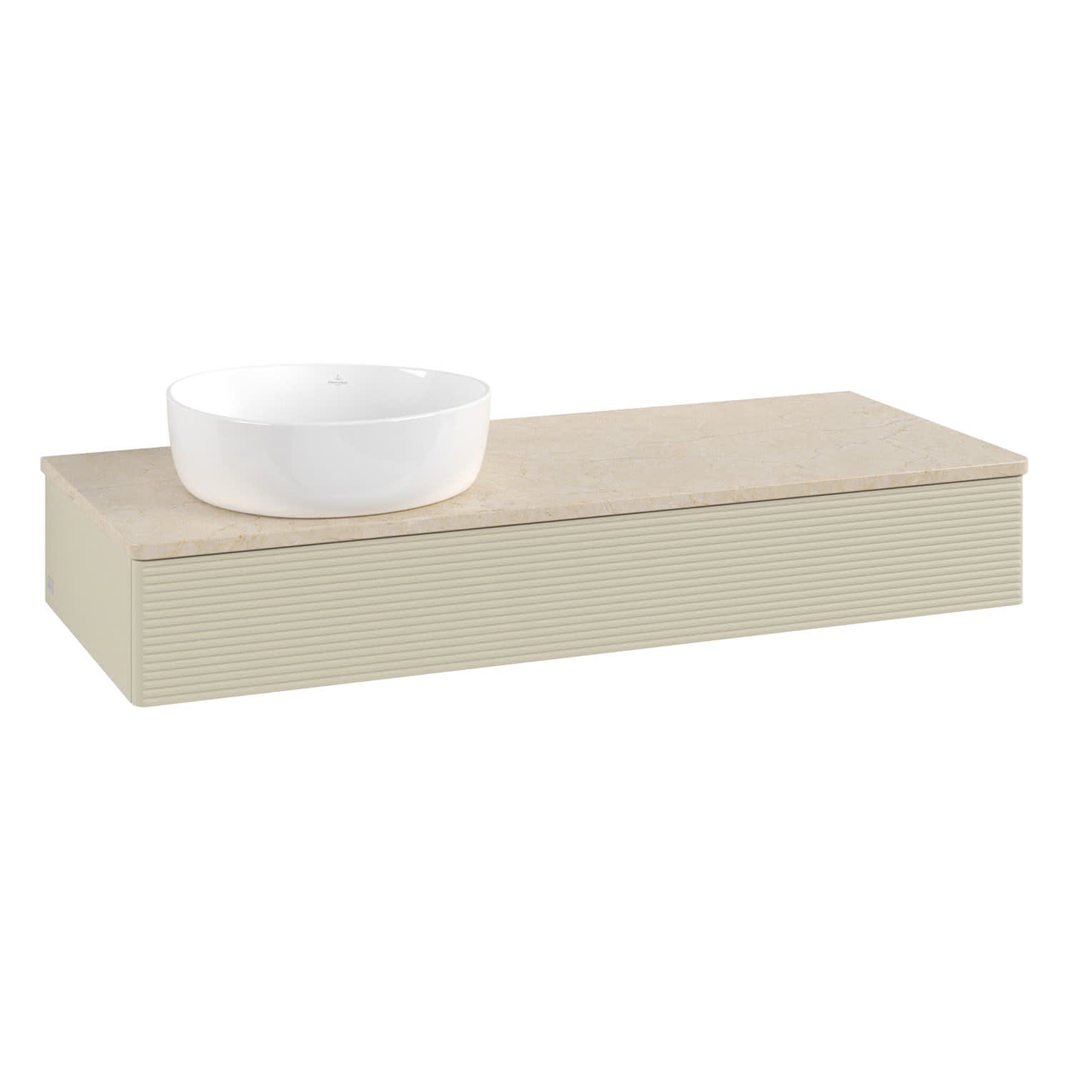 Villeroy & Boch Antao Waschbeckenunterschrank, 120 x 19 cm, 1 Auszug, Front mit Struktur, ohne Hahnloch, für Waschtisch links