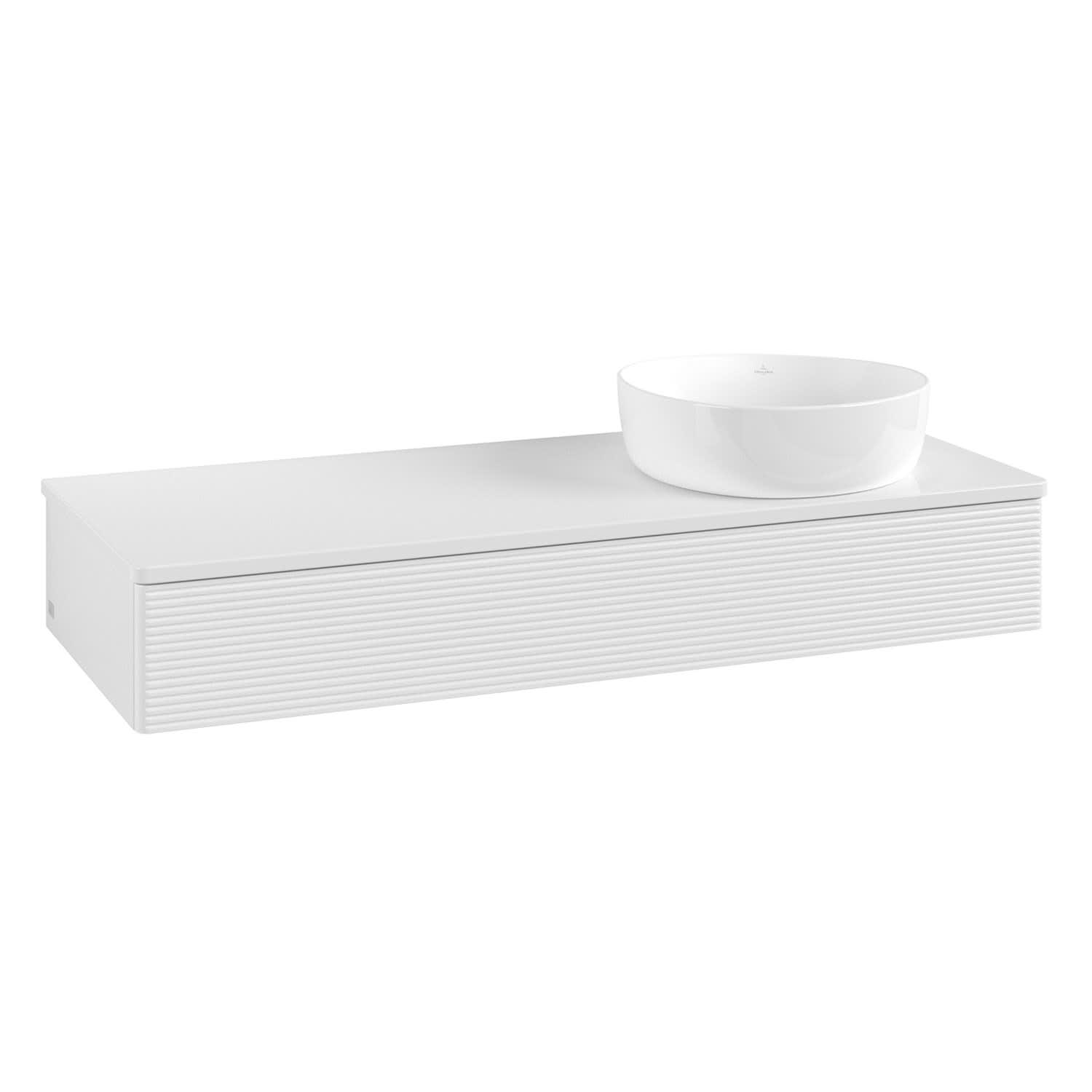 Villeroy & Boch Antao Waschbeckenunterschrank, 120 x 19 cm, 1 Auszug, Front mit Struktur, ohne Hahnloch, für Waschtisch rechts