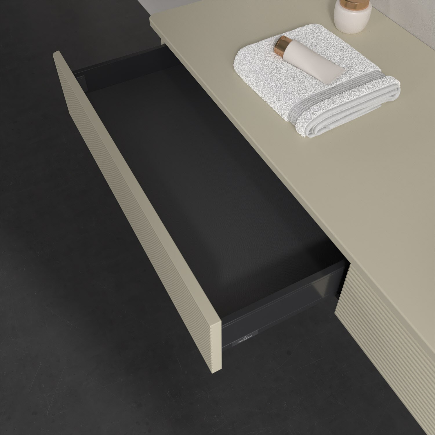 - kein Umfallen oder Verrutschen von Pflegeprodukten in den Schubladen dank rutschhemmendem Boden