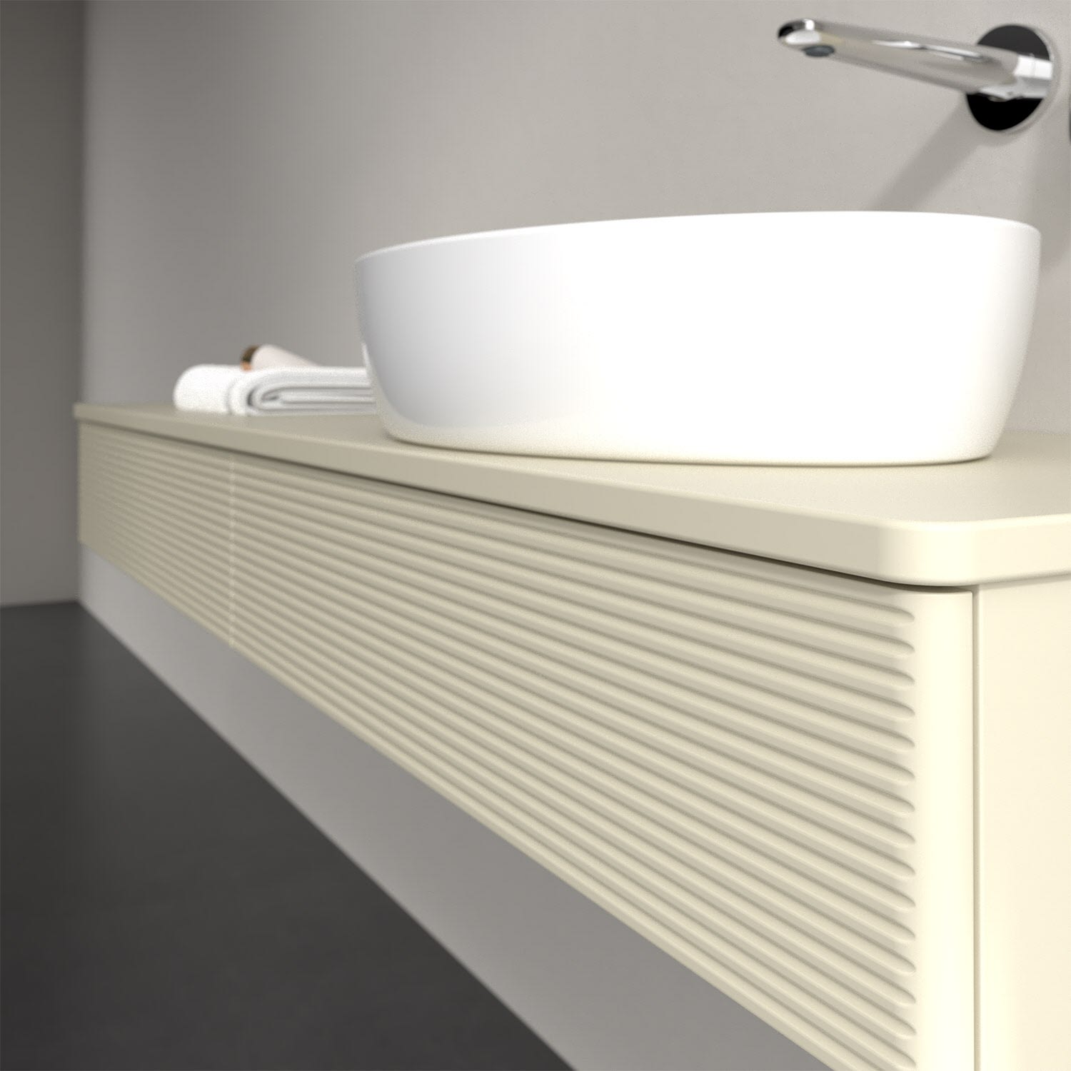 Für diesen Waschbeckenunterschrank stehen Ihnen Aufsatzwaschtische aus verschiedenen Serien zur Verfügung (siehe "Passliste" unter Downloads). Ein ausgewähltes Beispiel finden Sie im Zubehör. Den Waschtisch bitte separat mitbestellen.