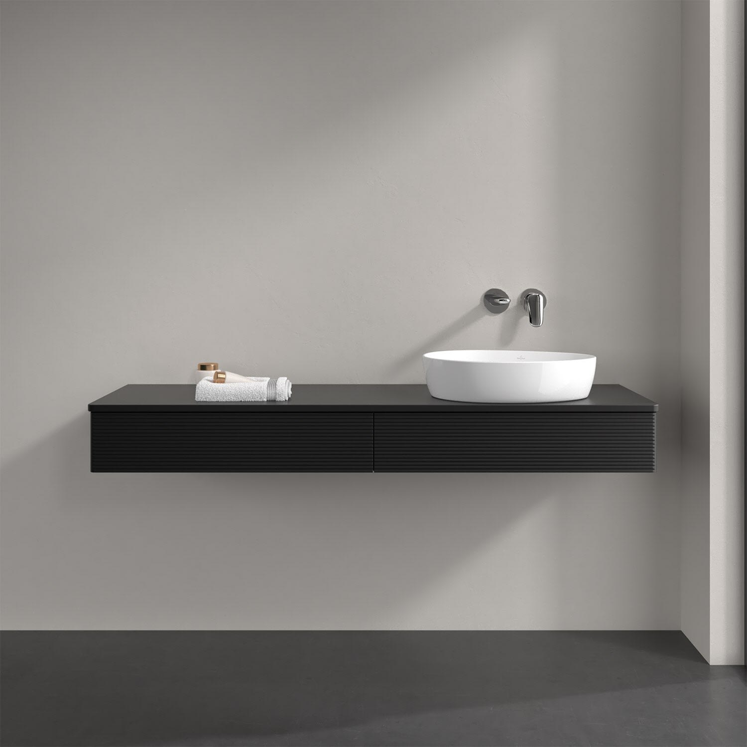 Villeroy & Boch Antao Waschbeckenunterschrank, 160 x 19 cm, 2 Auszüge, Front mit Struktur, ohne Hahnloch, für Waschtisch rechts