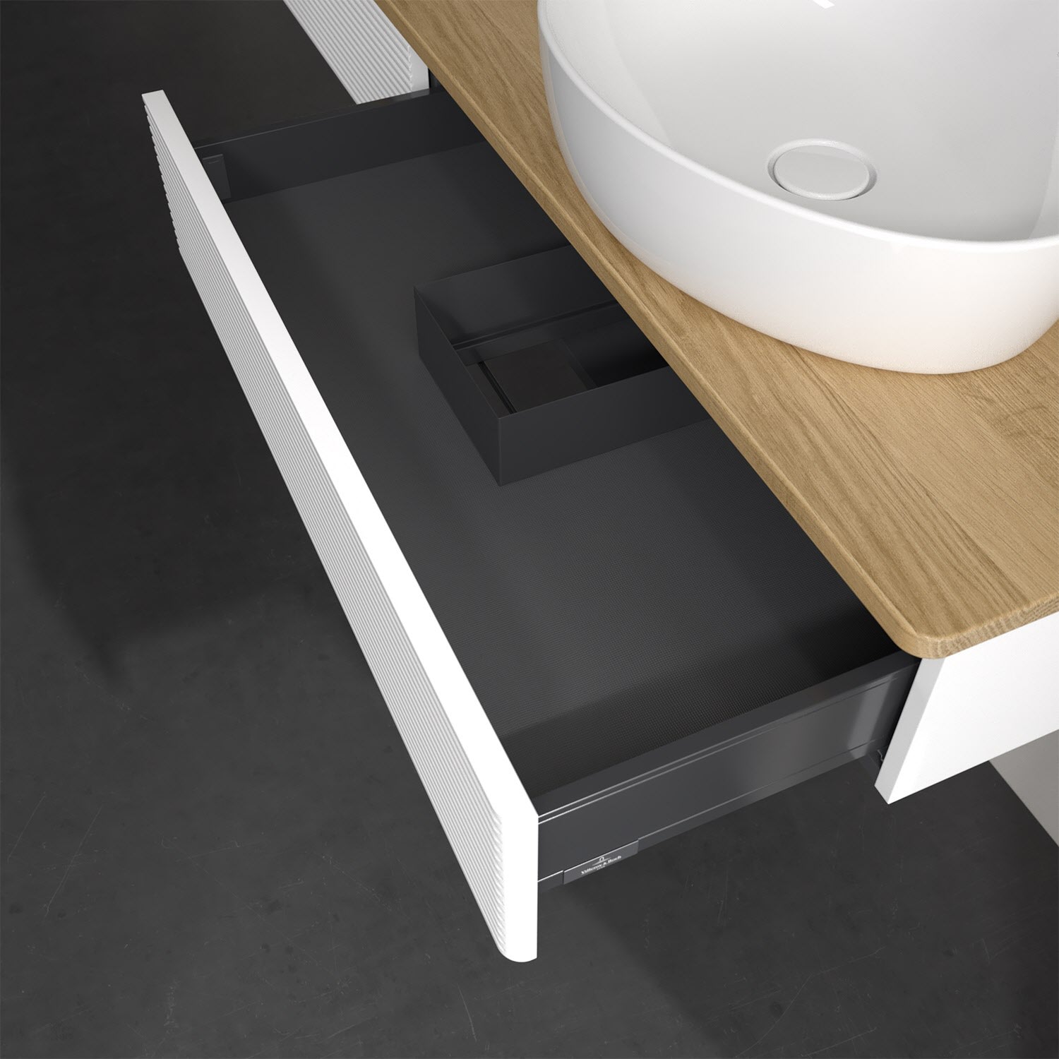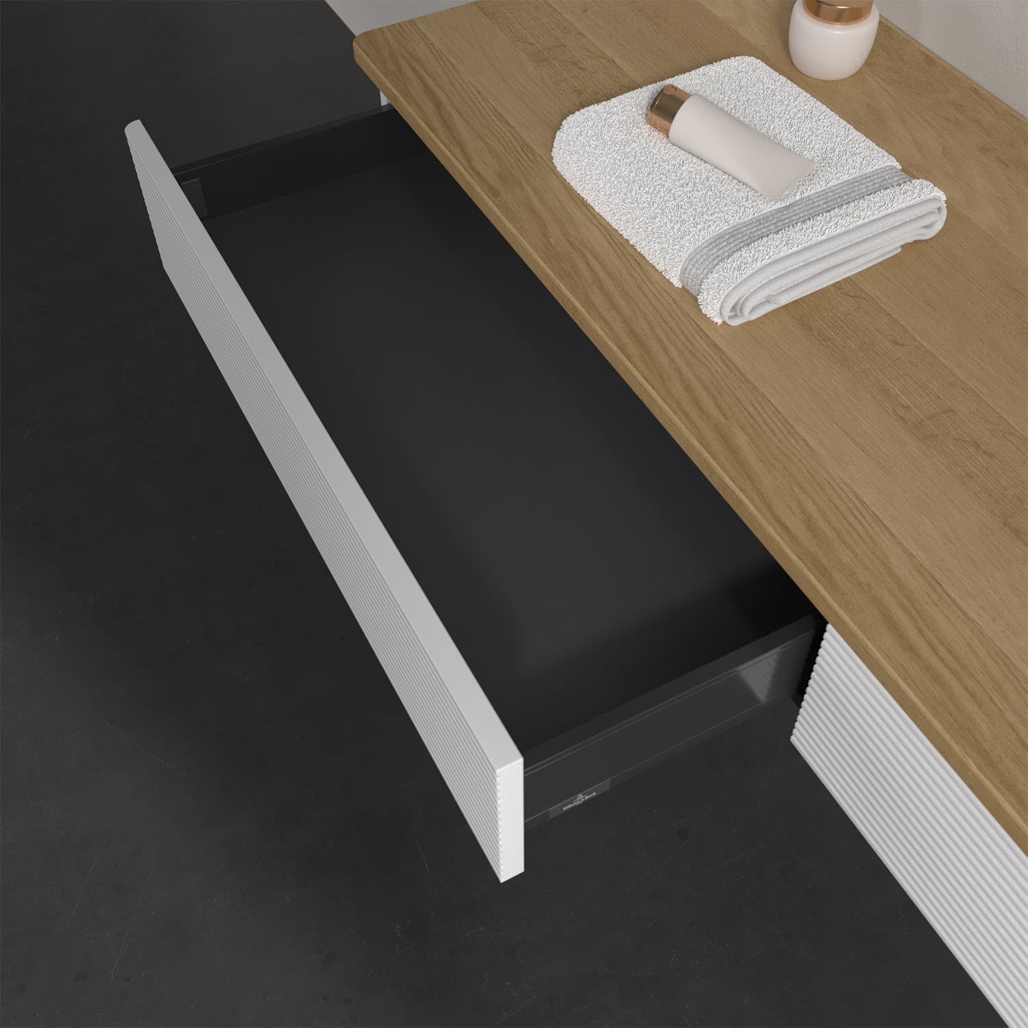 Villeroy & Boch Antao Waschbeckenunterschrank, 160 x 19 cm, 2 Auszüge, Front mit Struktur, ohne Hahnloch, für Waschtisch rechts