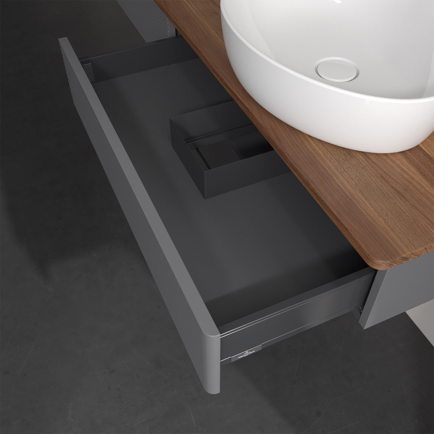 Villeroy & Boch Antao Waschbeckenunterschrank, 160 x 19 cm, 2 Auszüge, Front mit Struktur, ohne Hahnloch, für Waschtisch rechts