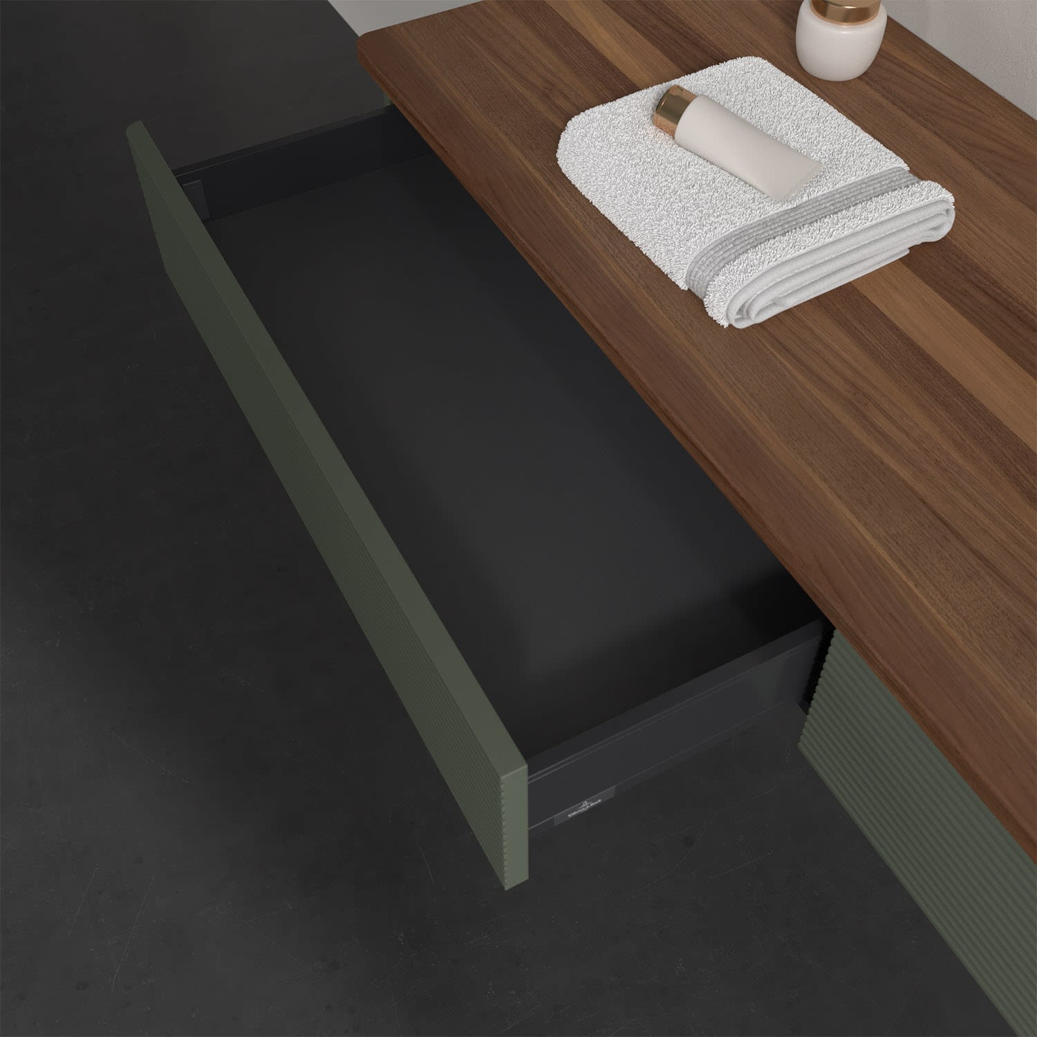 - kein Umfallen oder Verrutschen von Pflegeprodukten in den Schubladen dank rutschhemmendem Boden
