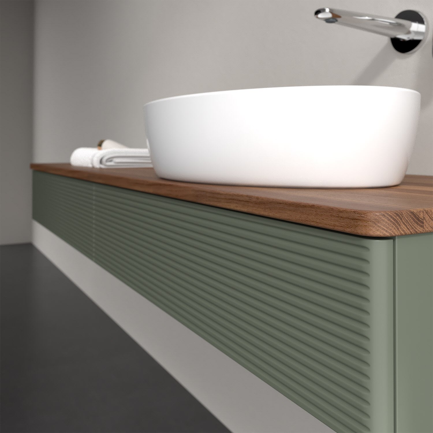 Für diesen Waschbeckenunterschrank stehen Ihnen Aufsatzwaschtische aus verschiedenen Serien zur Verfügung (siehe "Passliste" unter Downloads). Ein ausgewähltes Beispiel finden Sie im Zubehör. Den Waschtisch bitte separat mitbestellen.