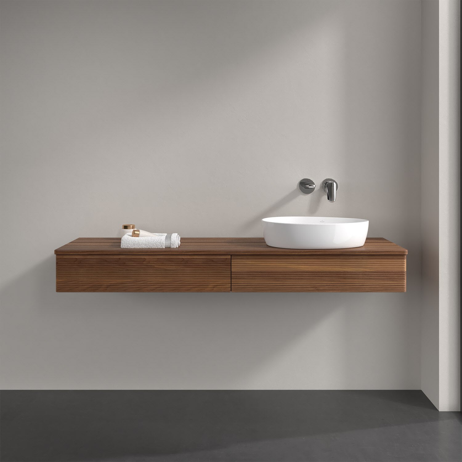 Villeroy & Boch Antao Waschbeckenunterschrank, 160 x 19 cm, 2 Auszüge, Front mit Struktur, ohne Hahnloch, für Waschtisch rechts