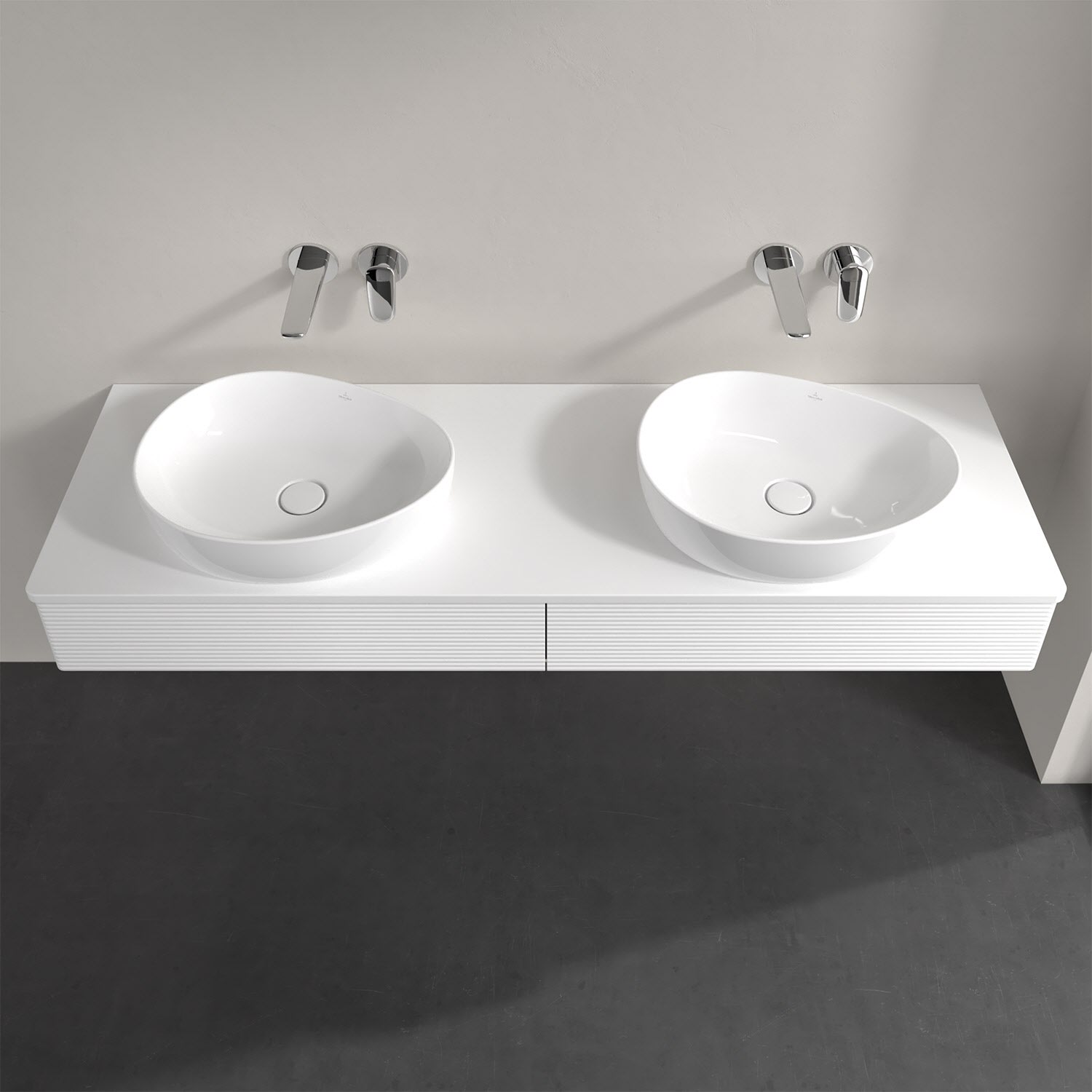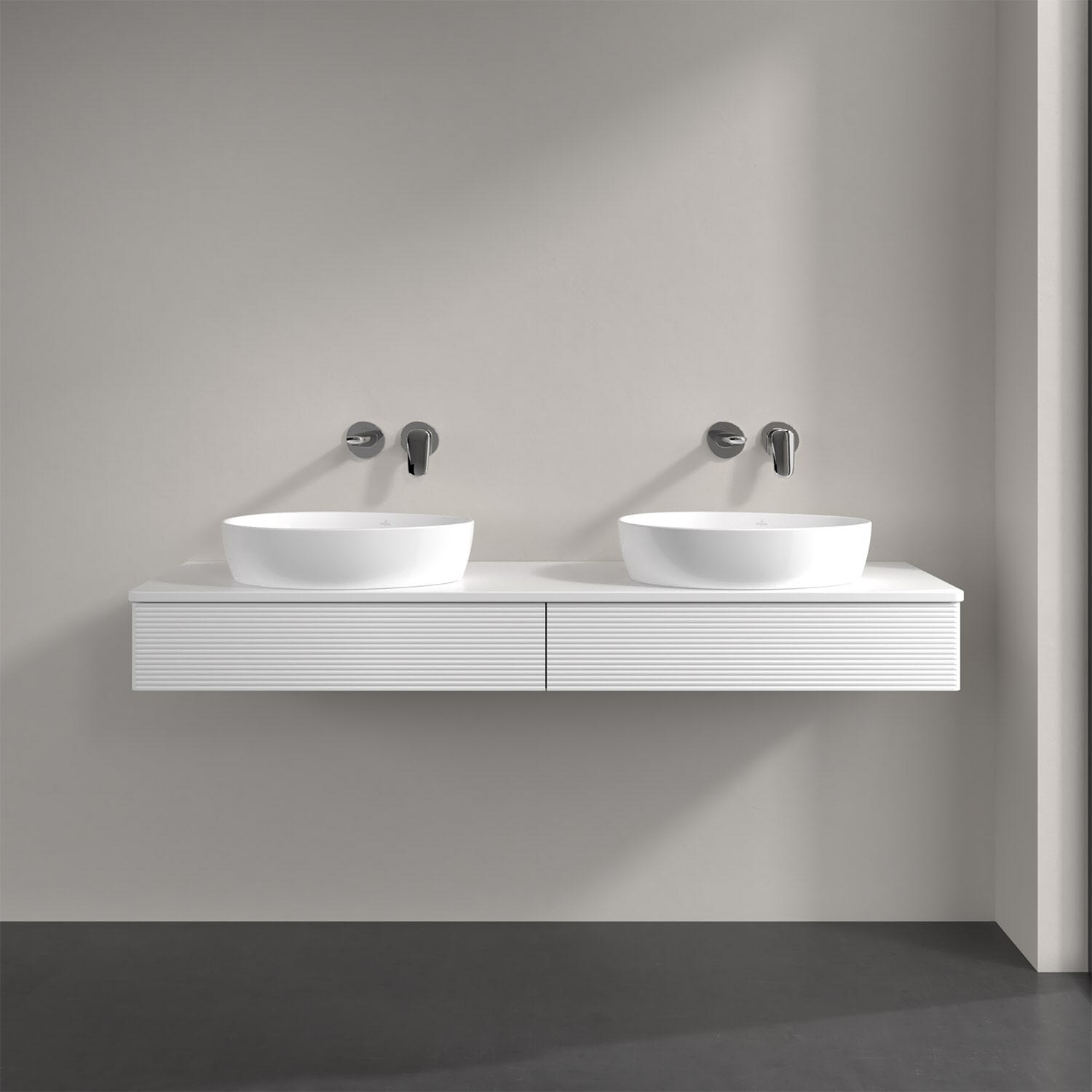Villeroy & Boch Antao Waschbeckenunterschrank, 160 x 19 cm, 2 Auszüge, Front mit Struktur, ohne Hahnloch, für Waschtisch links und rechts