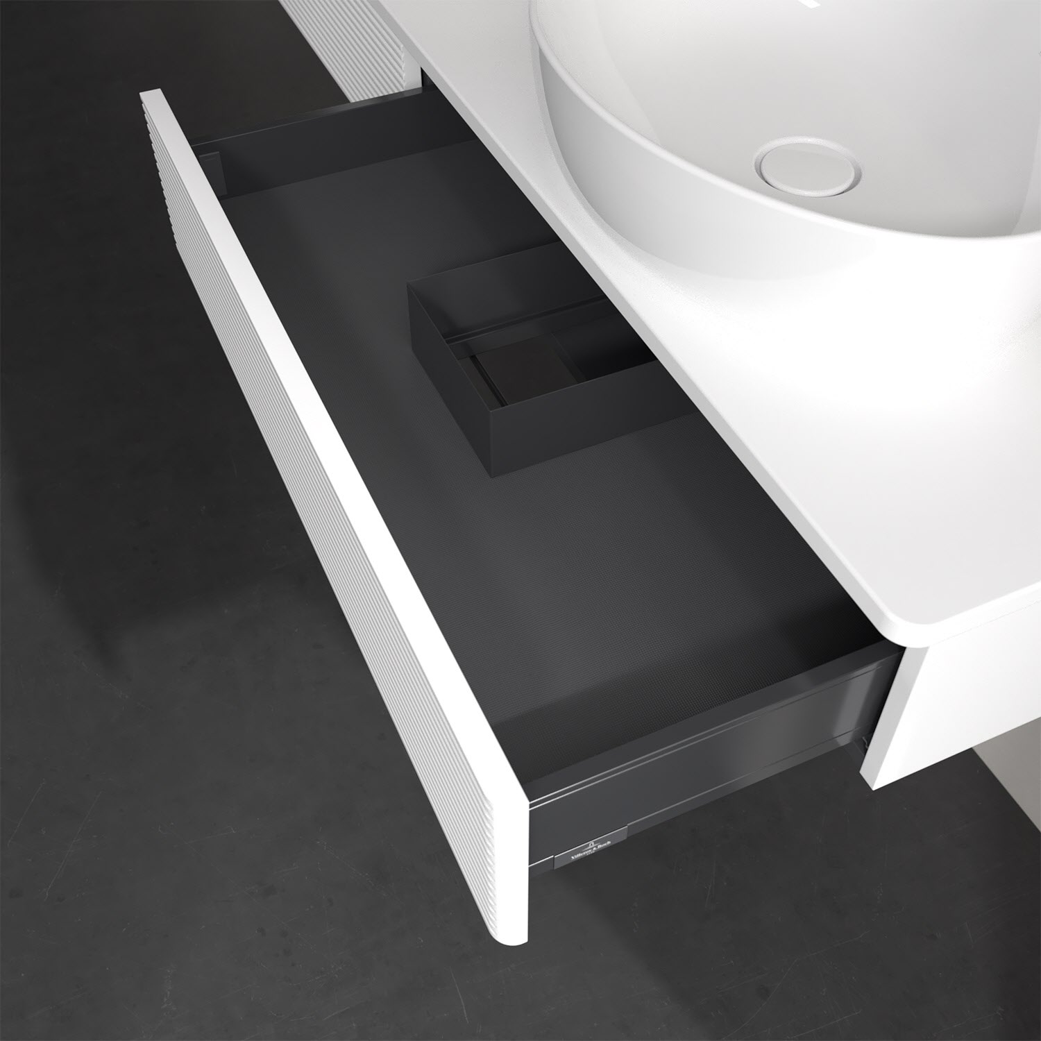 - kein Umfallen oder Verrutschen von Pflegeprodukten in den Schubladen dank rutschhemmendem Boden