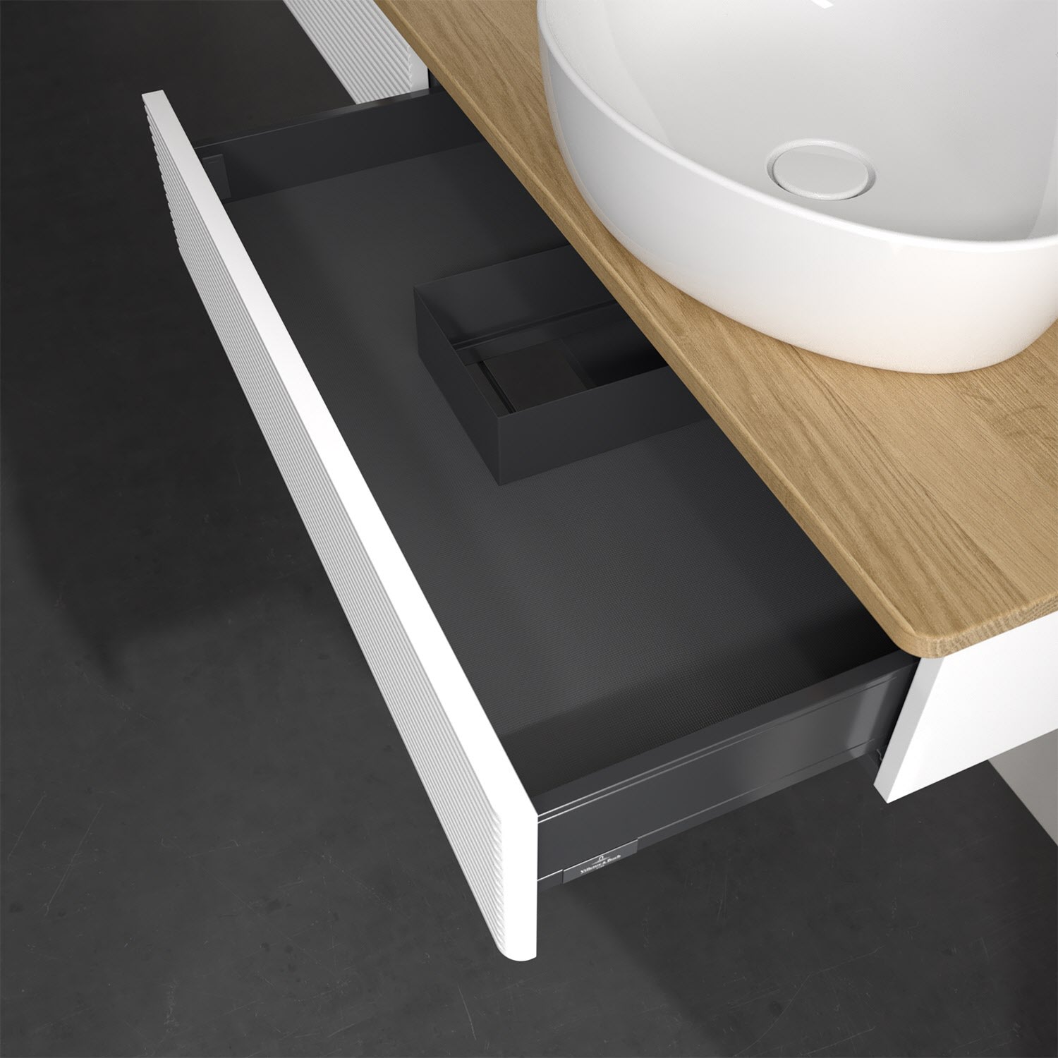 Villeroy & Boch Antao Waschbeckenunterschrank, 160 x 19 cm, 2 Auszüge, Front mit Struktur, ohne Hahnloch, für Waschtisch links und rechts