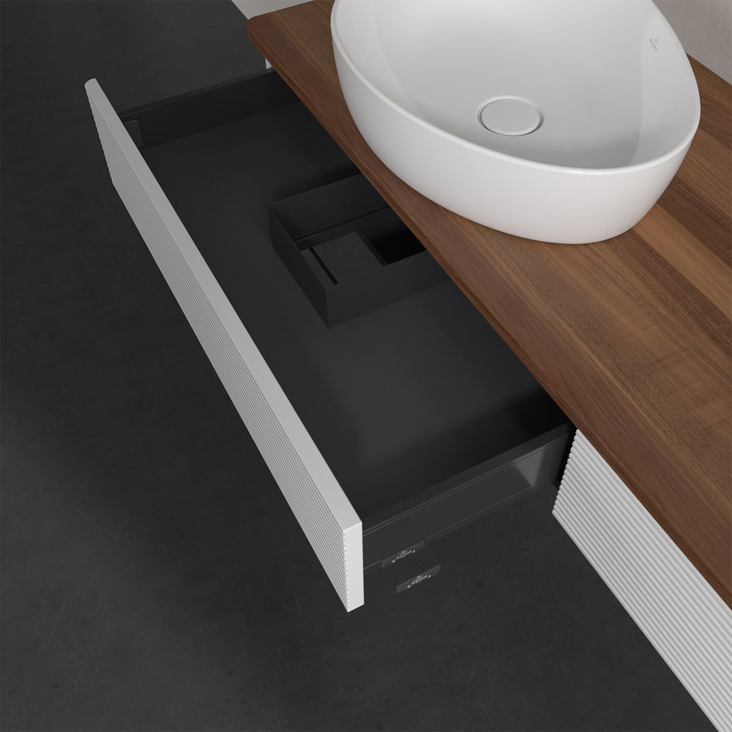Villeroy & Boch Antao Waschbeckenunterschrank, 160 x 19 cm, 2 Auszüge, Front mit Struktur, ohne Hahnloch, für Waschtisch links und rechts