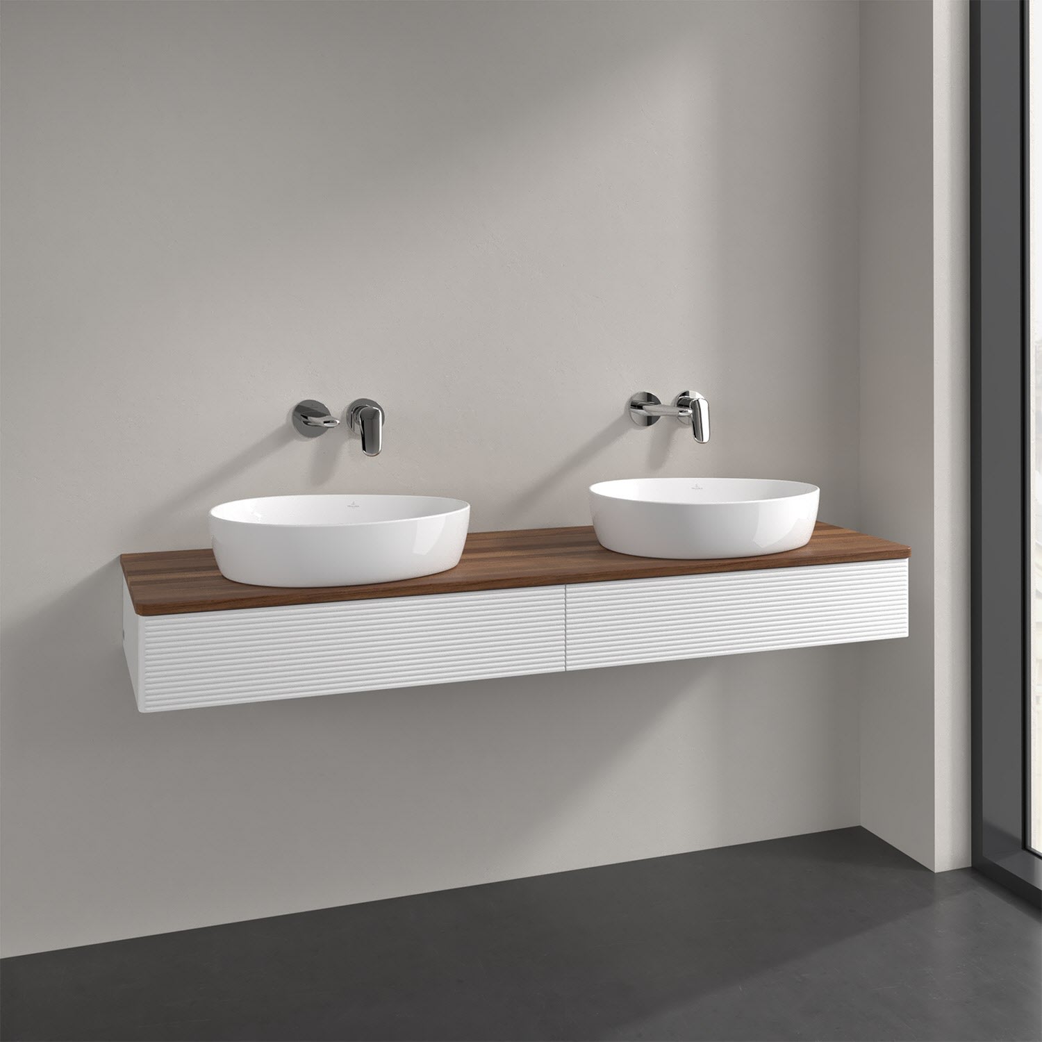 Villeroy & Boch Antao Waschbeckenunterschrank, 160 x 19 cm, 2 Auszüge, Front mit Struktur, ohne Hahnloch, für Waschtisch links und rechts
