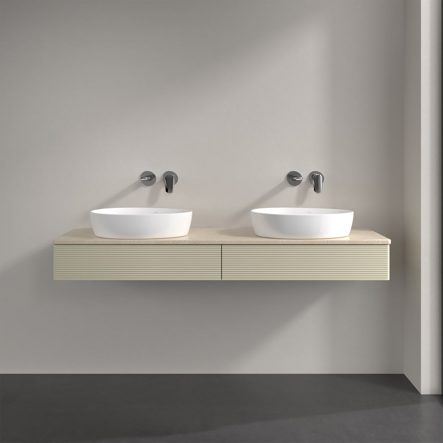 Villeroy & Boch Antao Waschbeckenunterschrank, 160 x 19 cm, 2 Auszüge, Front mit Struktur, ohne Hahnloch, für Waschtisch links und rechts