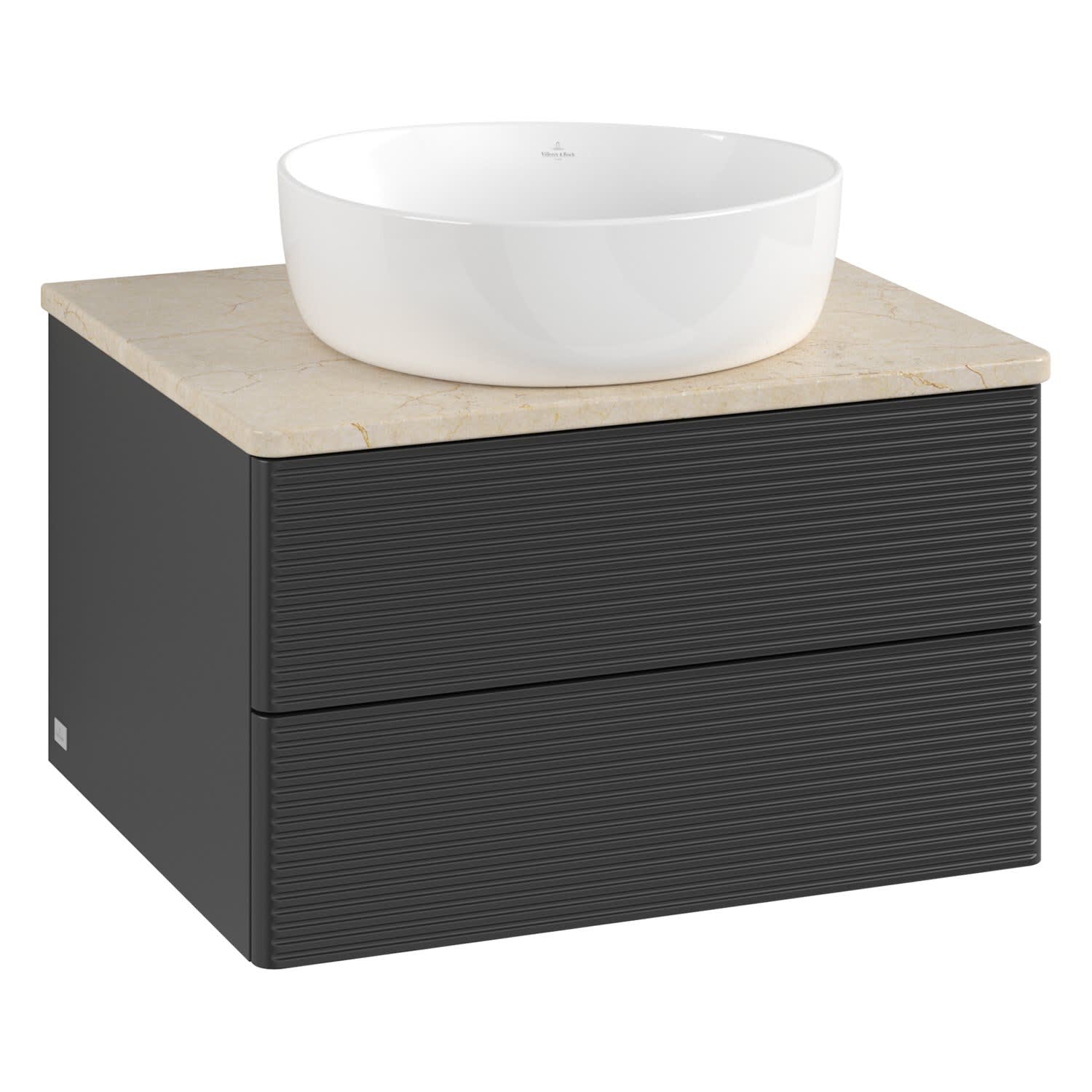 Villeroy & Boch Antao Waschbeckenunterschrank, 60 x 19 cm, 2 Auszüge, Fronten mit Struktur, ohne Hahnloch