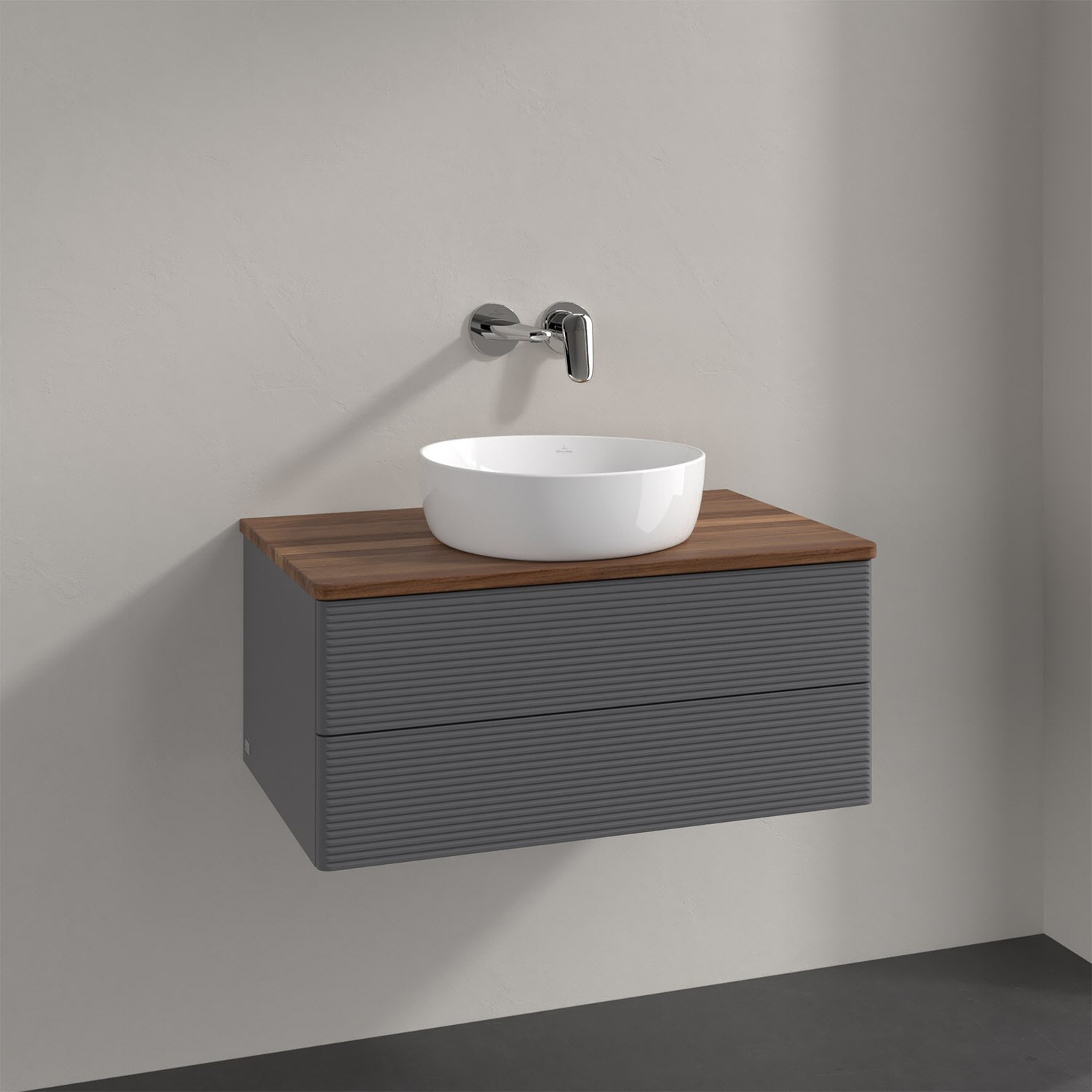 Villeroy & Boch Antao Waschbeckenunterschrank, 80 x 19 cm, 2 Auszüge, Fronten mit Struktur, ohne Hahnloch