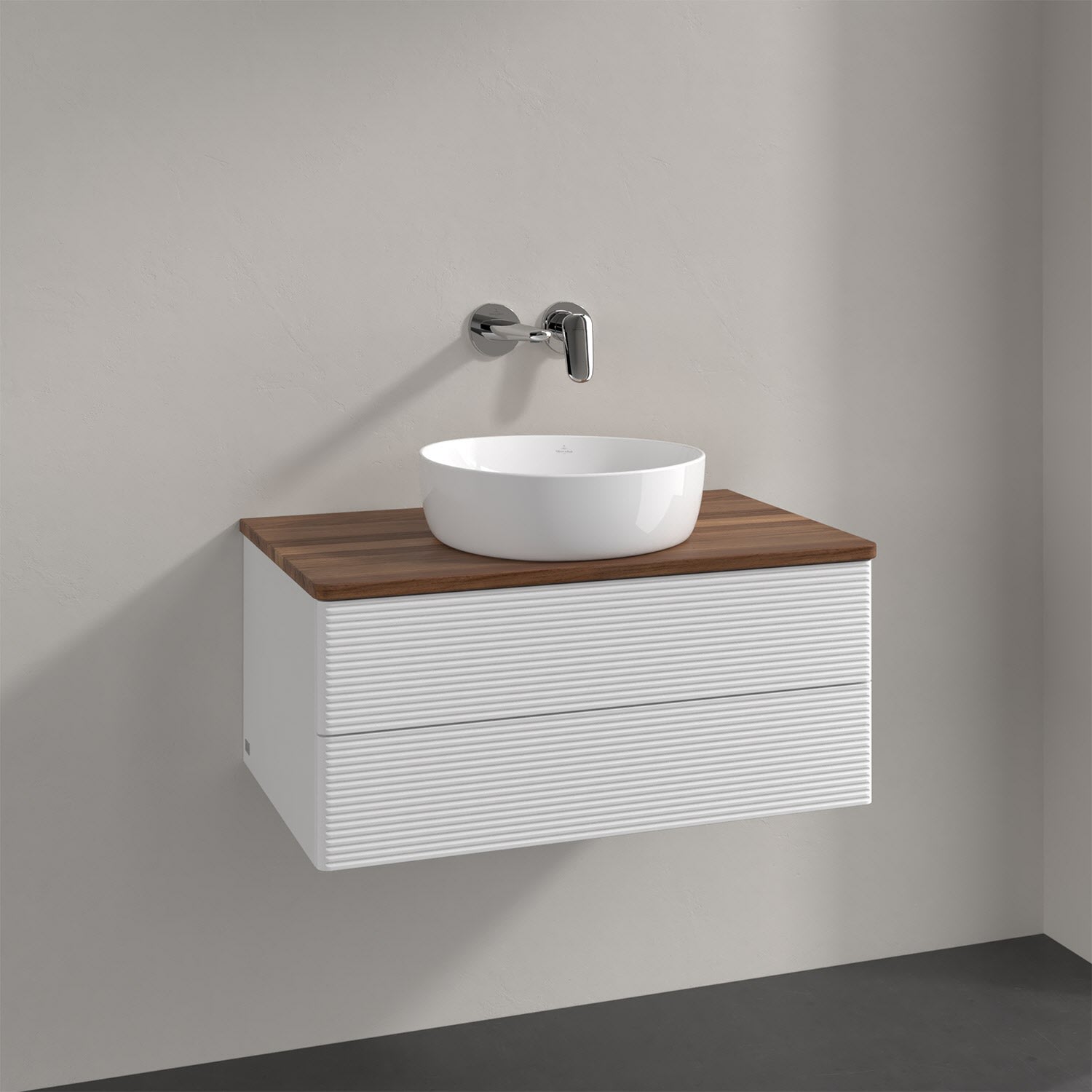 Villeroy & Boch Antao Waschbeckenunterschrank, 80 x 19 cm, 2 Auszüge, Fronten mit Struktur, ohne Hahnloch