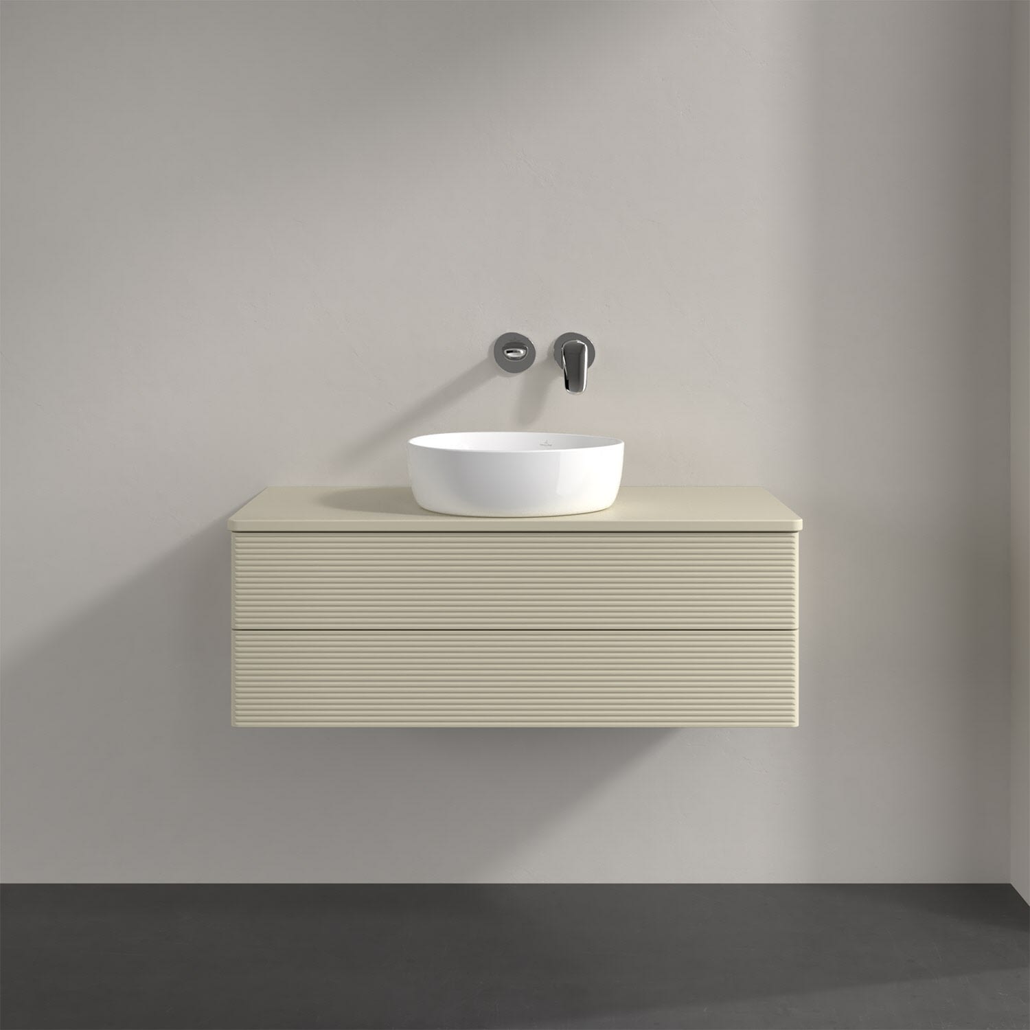 Villeroy & Boch Antao Waschbeckenunterschrank, 100 x 19 cm, 2 Auszüge, Fronten mit Struktur, ohne Hahnloch