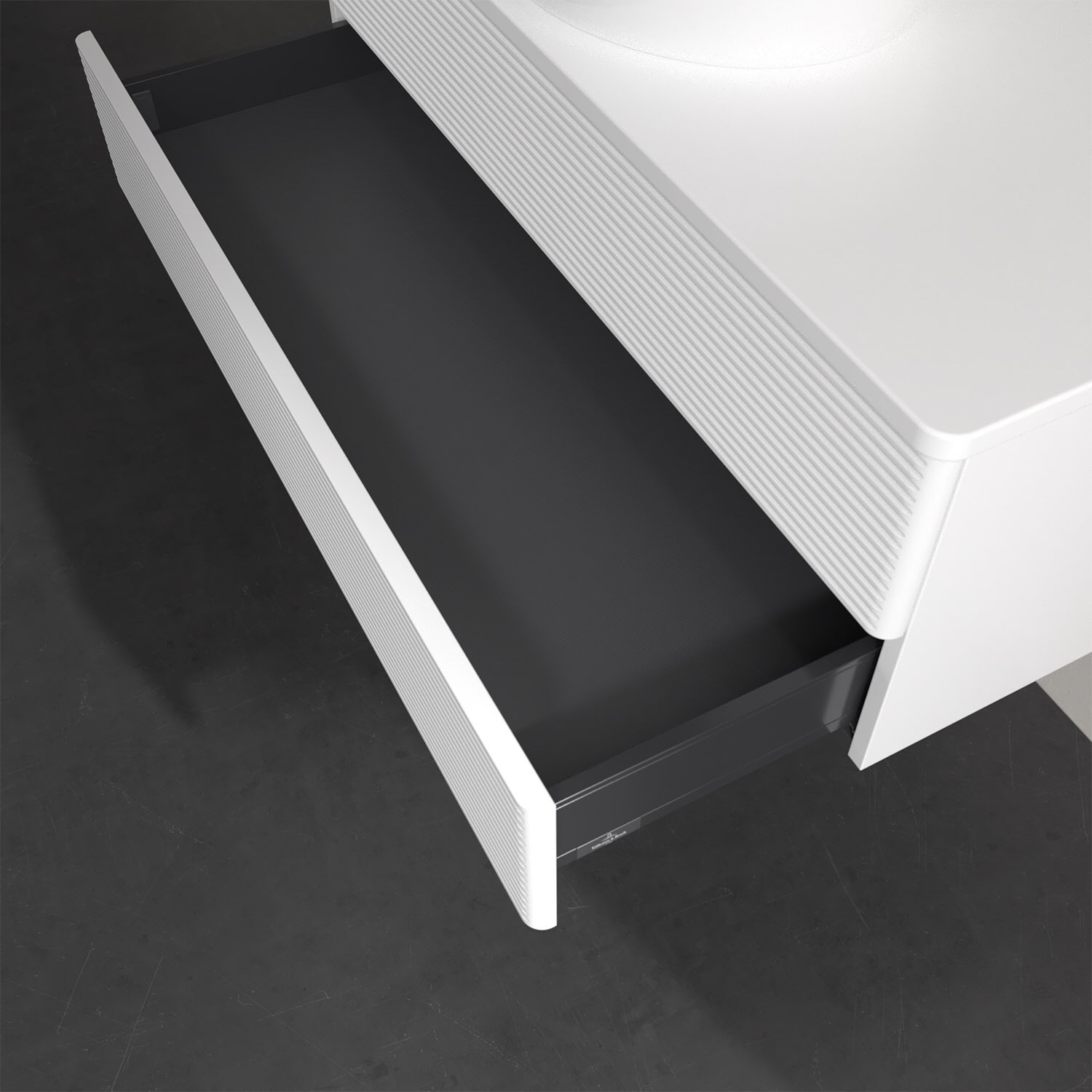 Villeroy & Boch Antao Waschbeckenunterschrank, 100 x 19 cm, 2 Auszüge, Fronten mit Struktur, ohne Hahnloch