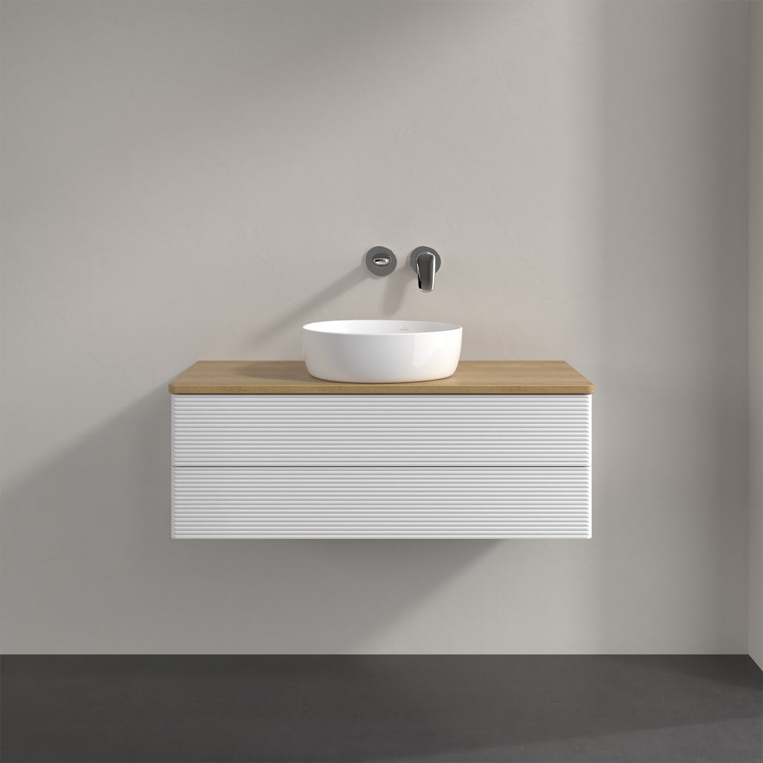 Villeroy & Boch Antao Waschbeckenunterschrank, 100 x 19 cm, 2 Auszüge, Fronten mit Struktur, ohne Hahnloch