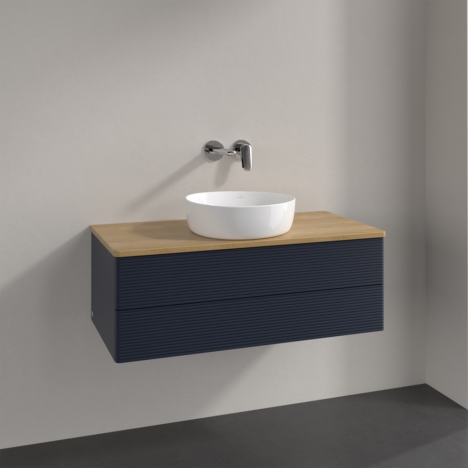 Villeroy & Boch Antao Waschbeckenunterschrank, 100 x 19 cm, 2 Auszüge, Fronten mit Struktur, ohne Hahnloch