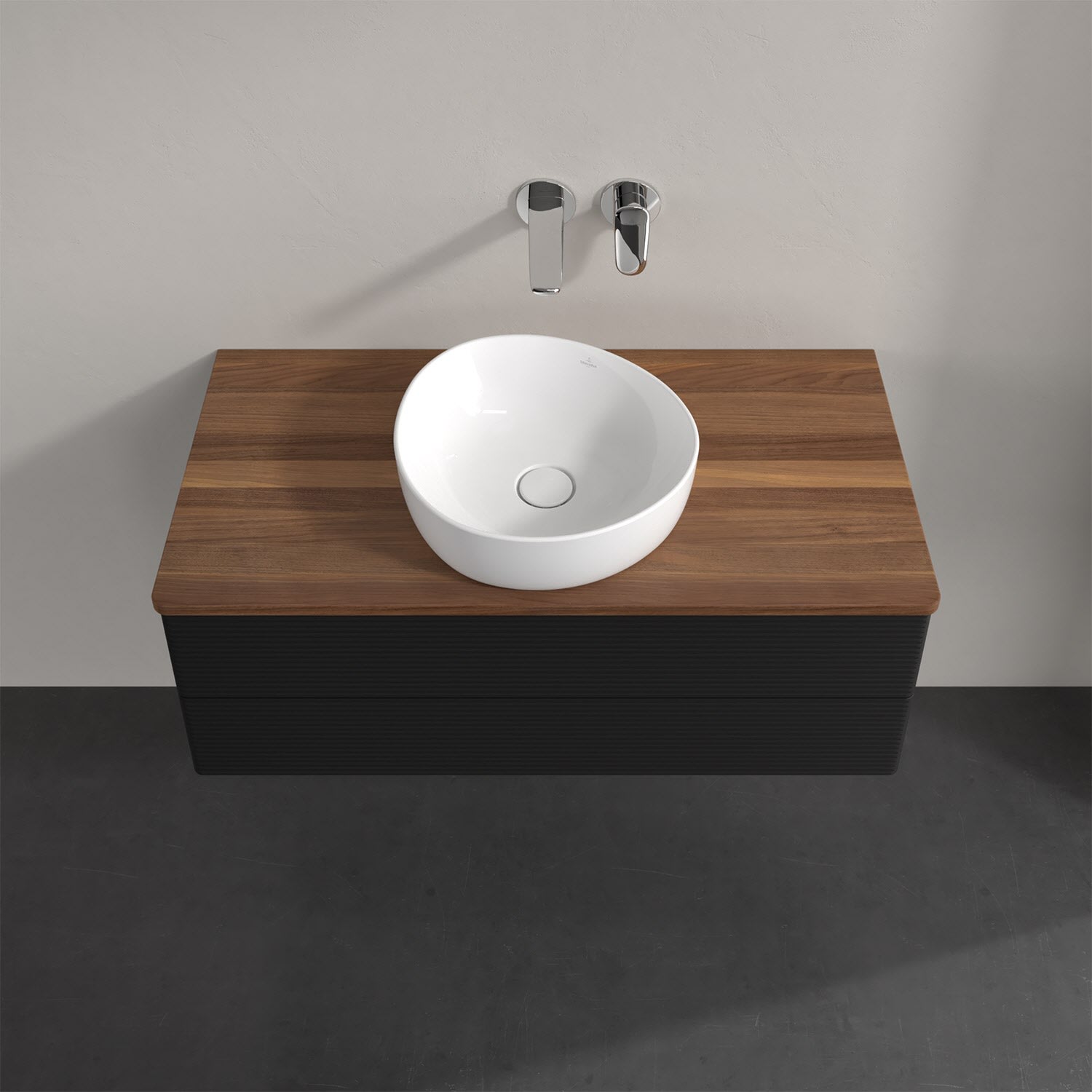 Villeroy & Boch Antao Waschbeckenunterschrank, 100 x 19 cm, 2 Auszüge, Fronten mit Struktur, ohne Hahnloch