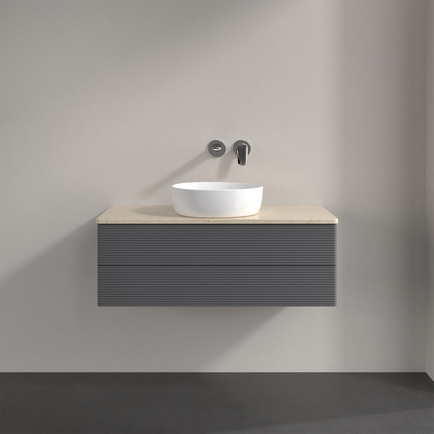 Villeroy & Boch Antao Waschbeckenunterschrank, 100 x 19 cm, 2 Auszüge, Fronten mit Struktur, ohne Hahnloch