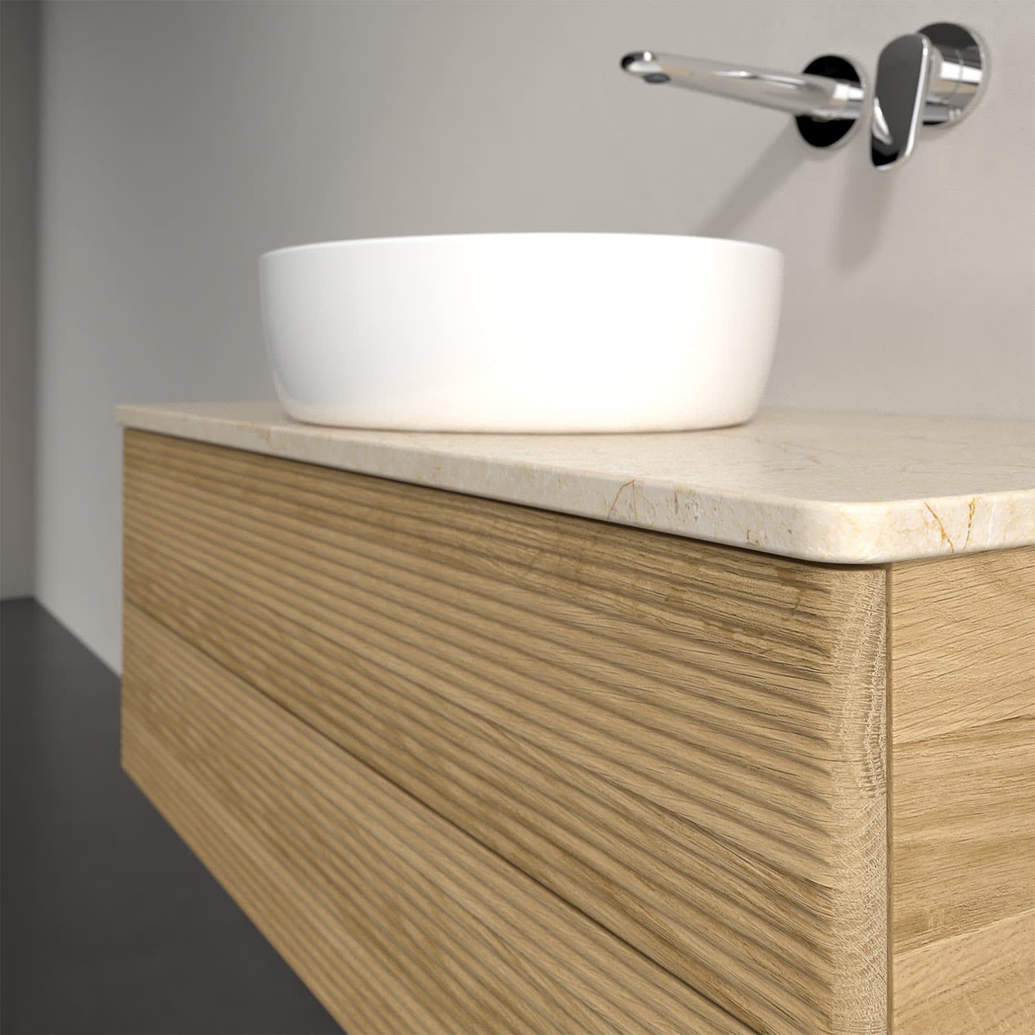 Villeroy & Boch Antao Waschbeckenunterschrank, 100 x 19 cm, 2 Auszüge, Fronten mit Struktur, ohne Hahnloch