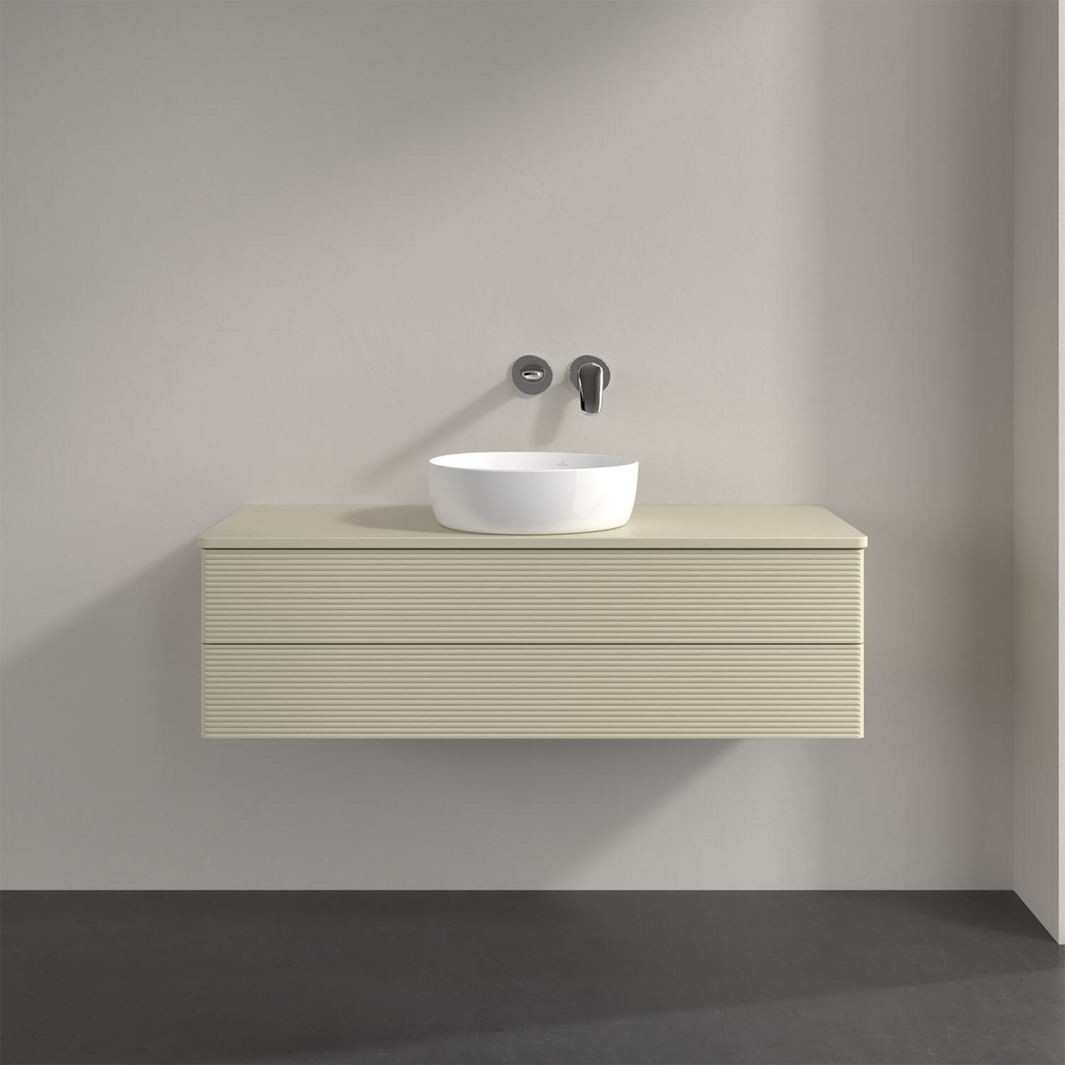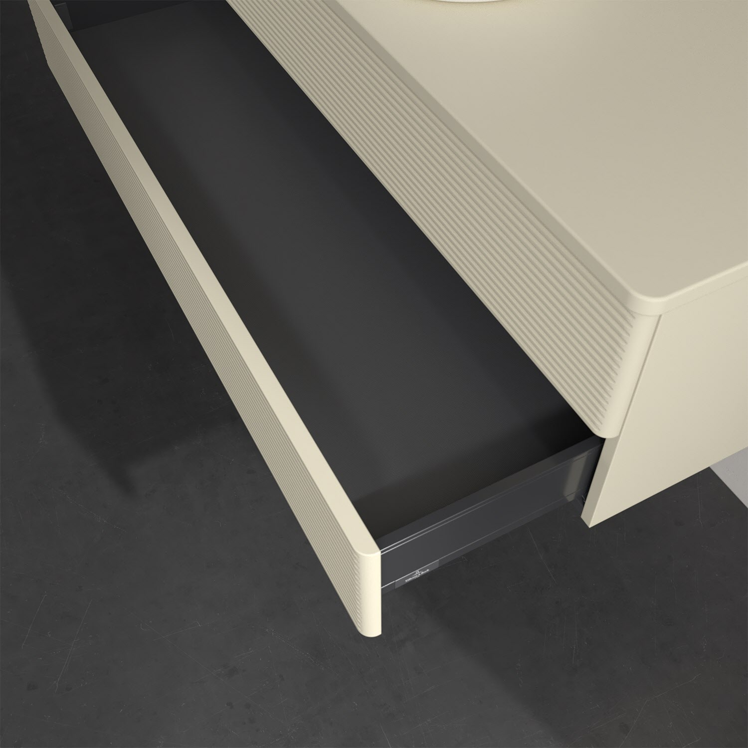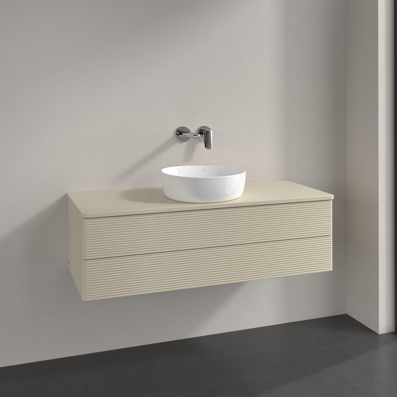 Villeroy & Boch Antao Waschbeckenunterschrank, 120 x 19 cm, 2 Auszüge, Fronten mit Struktur, ohne Hahnloch, für Waschtisch mittig