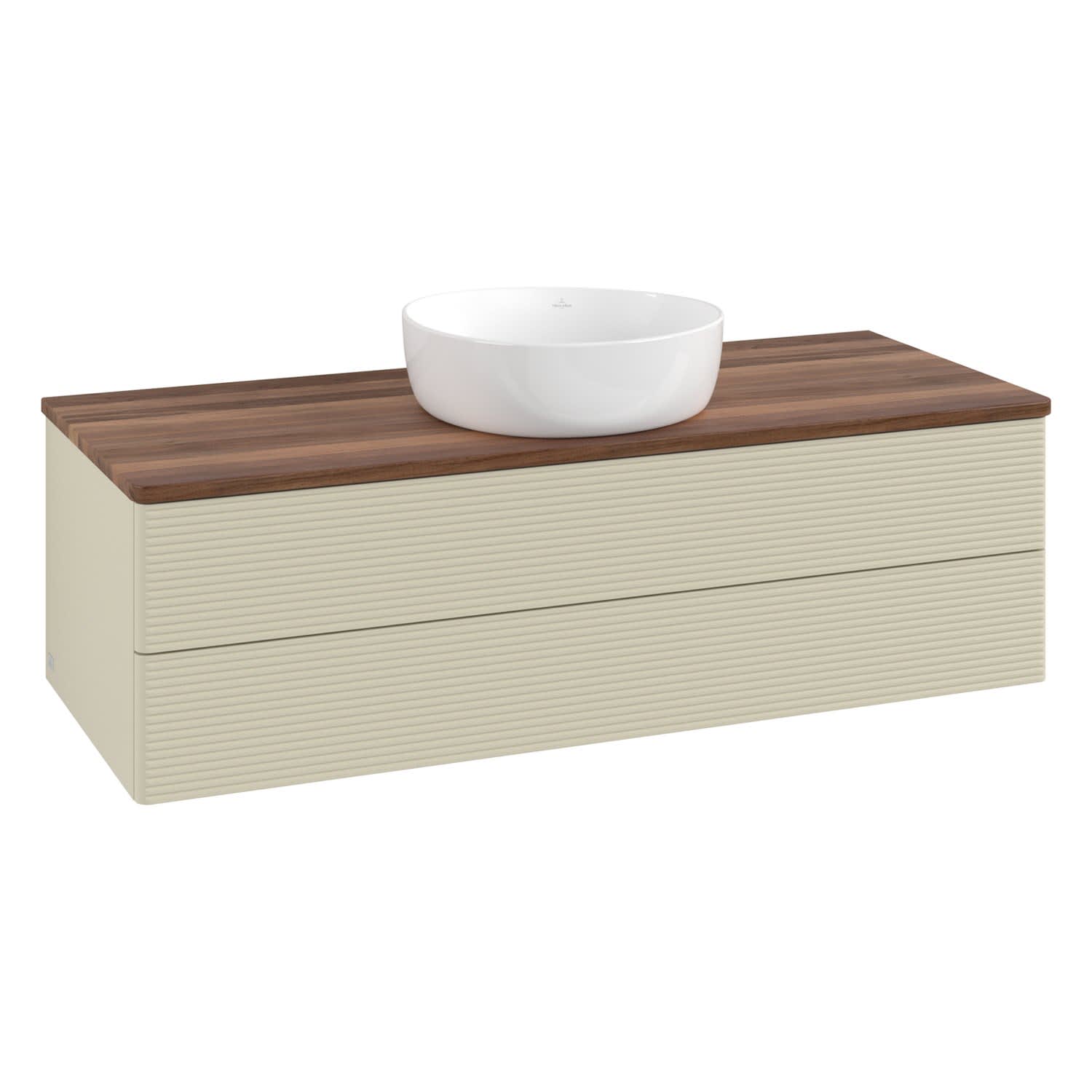 Villeroy & Boch Antao Waschbeckenunterschrank, 120 x 19 cm, 2 Auszüge, Fronten mit Struktur, ohne Hahnloch, für Waschtisch mittig