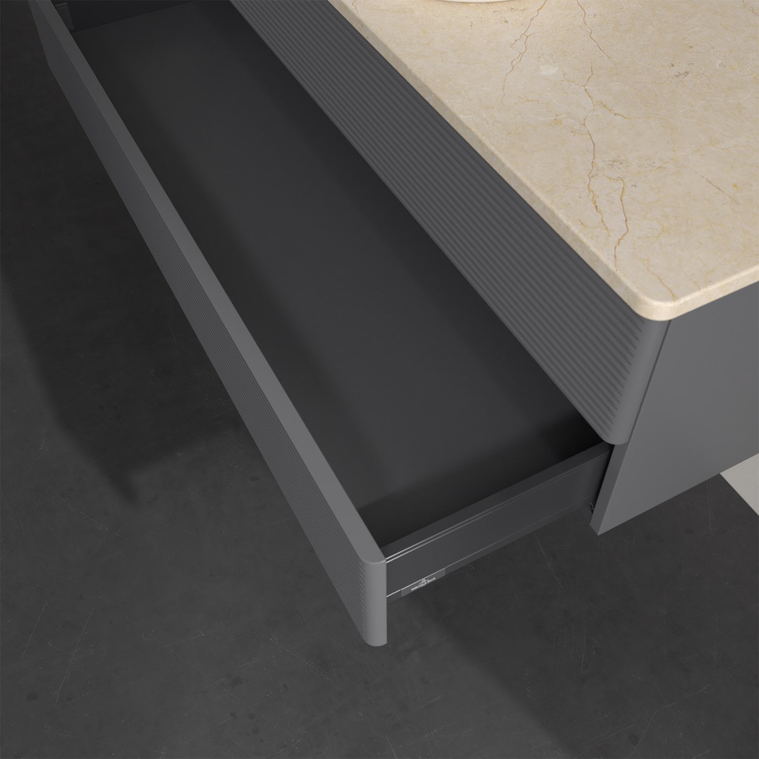 Villeroy & Boch Antao Waschbeckenunterschrank, 120 x 19 cm, 2 Auszüge, Fronten mit Struktur, ohne Hahnloch, für Waschtisch mittig