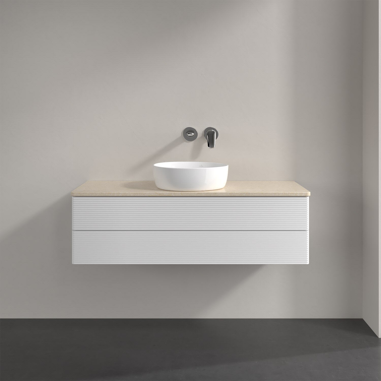 Villeroy & Boch Antao Waschbeckenunterschrank, 120 x 19 cm, 2 Auszüge, Fronten mit Struktur, ohne Hahnloch, für Waschtisch mittig