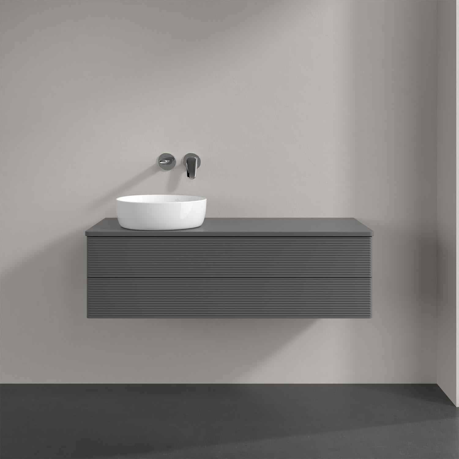 Villeroy & Boch Antao Waschbeckenunterschrank, 120 x 19 cm, 2 Auszüge, Fronten mit Struktur, ohne Hahnloch, für Waschtisch links