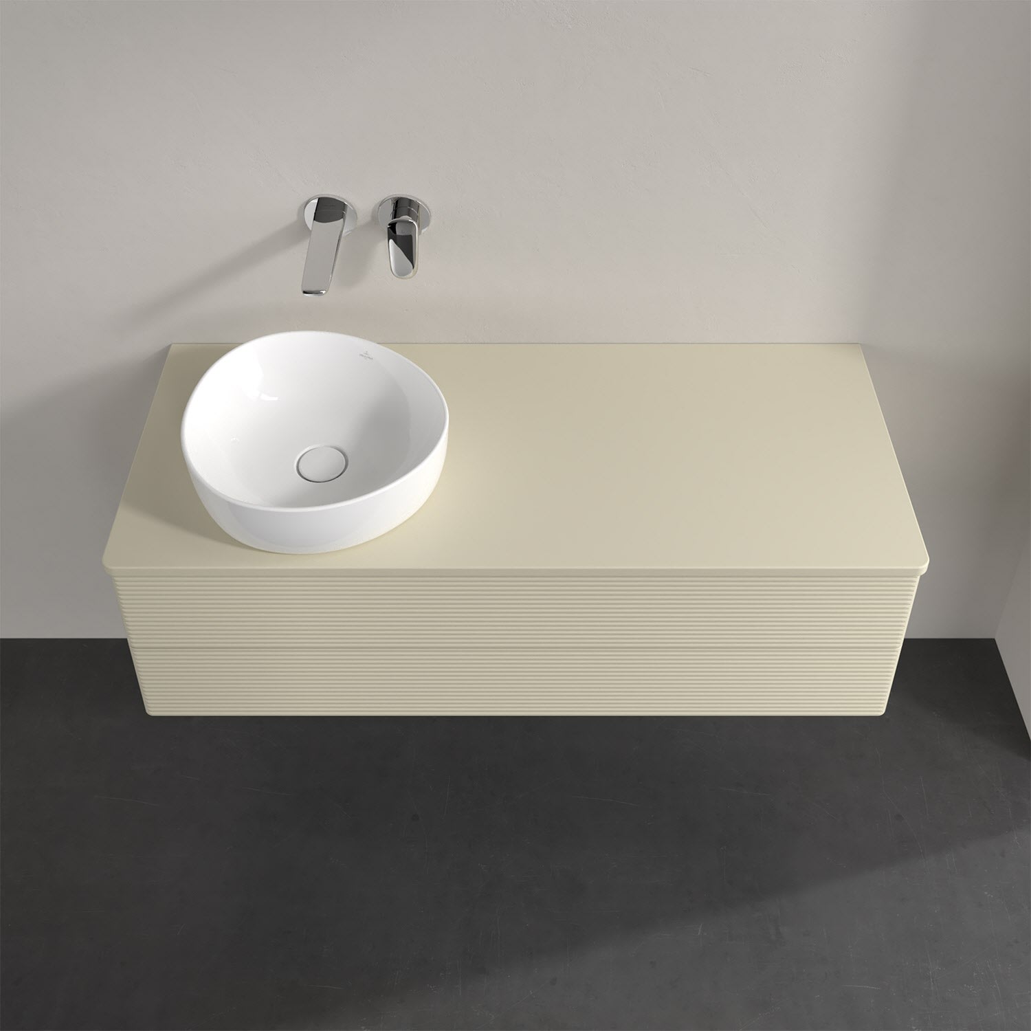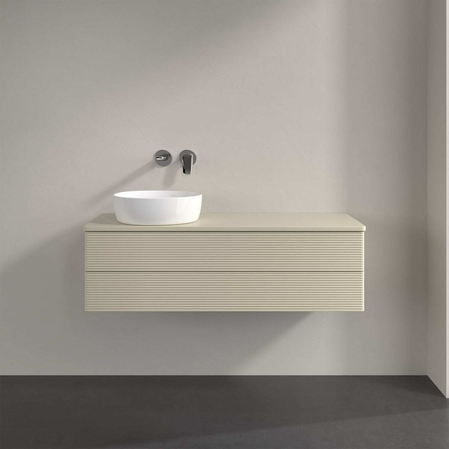 Villeroy & Boch Antao Waschbeckenunterschrank, 120 x 19 cm, 2 Auszüge, Fronten mit Struktur, ohne Hahnloch, für Waschtisch links