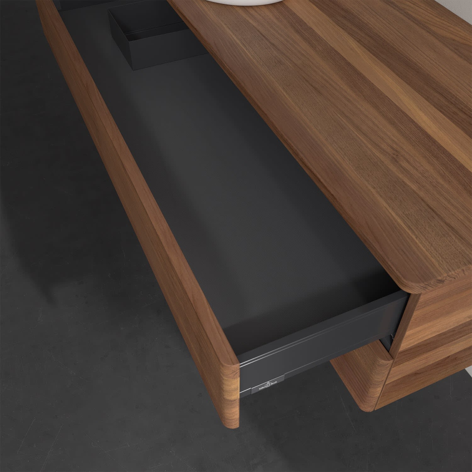 Der wandhängende Antao Waschtischunterschrank von Villeroy & Boch bietet nicht nur jede Menge Stauraum – er ist dank seines naturinspirierten Designs mit seinen abgerundeten Kanten auch noch besonders stilvoll und schafft eine gemütliche Atmosphäre im Badezimmer. Auf der Waschtischplatte bietet sich seitlich des Waschtischs viel Platz für Zahnbürstenbecher oder Seifenspender. Zwei geräumige Auszüge bieten viel Platz, um alles Notwendige zu verstauen und Ordnung zu halten. Öffnen lassen sie sich durch leichten Druck auf die strukturierte Front. Dank Vollauszug hat man immer alles im Blick und der Antirutschboden verhindert ein Umfallen oder Verrutschen der Gegenstände. Einfach clever! Für eine besonders leichte Pflege sorgt die mehrschichtig deckend lackierte Oberfläche. Bei der Ausführung in Massivholz wird dank des verarbeiteten Massivholzes jedes Möbel zu einem Unikat, das sich durch das lebendige Naturmaterial durch seine einzigartige Struktur und Maserung auszeichnet.
