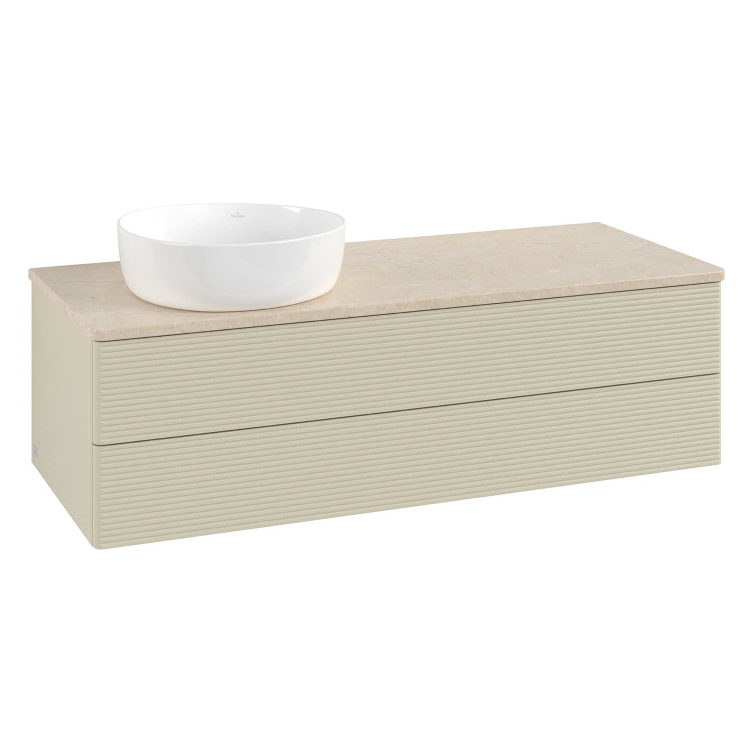 Villeroy & Boch Antao Waschbeckenunterschrank, 120 x 19 cm, 2 Auszüge, Fronten mit Struktur, ohne Hahnloch, für Waschtisch links