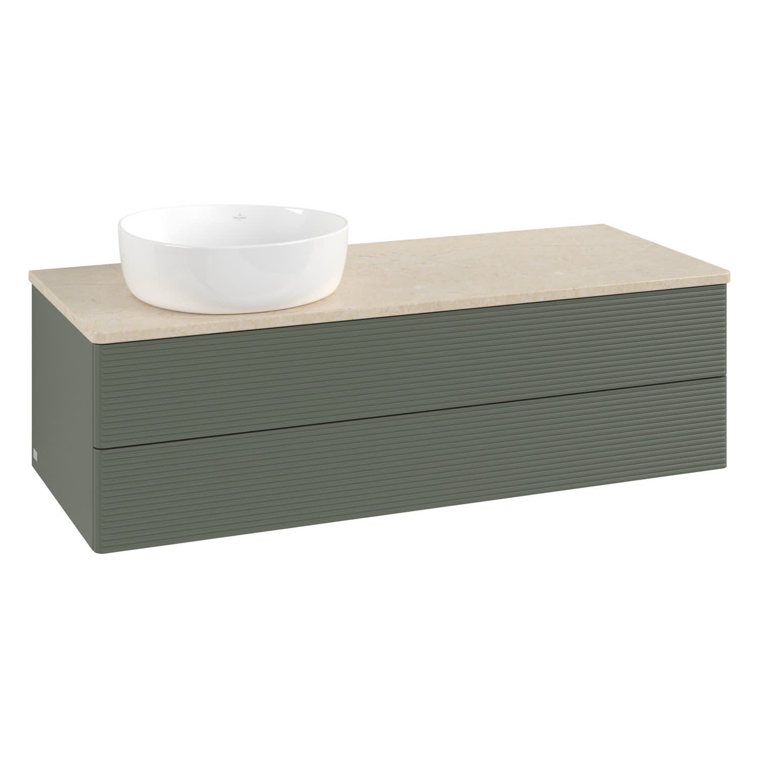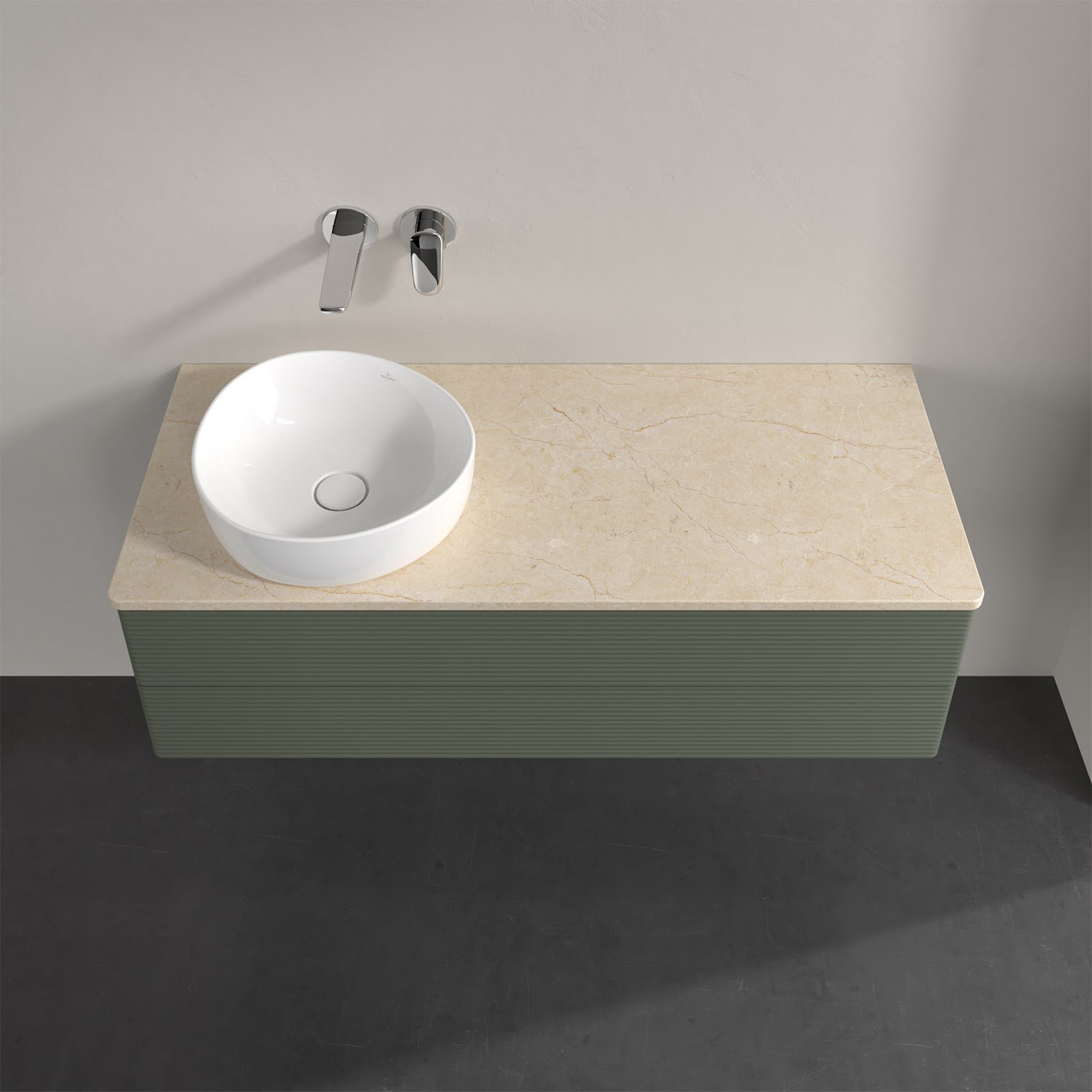 Villeroy & Boch Antao Waschbeckenunterschrank, 120 x 19 cm, 2 Auszüge, Fronten mit Struktur, ohne Hahnloch, für Waschtisch links