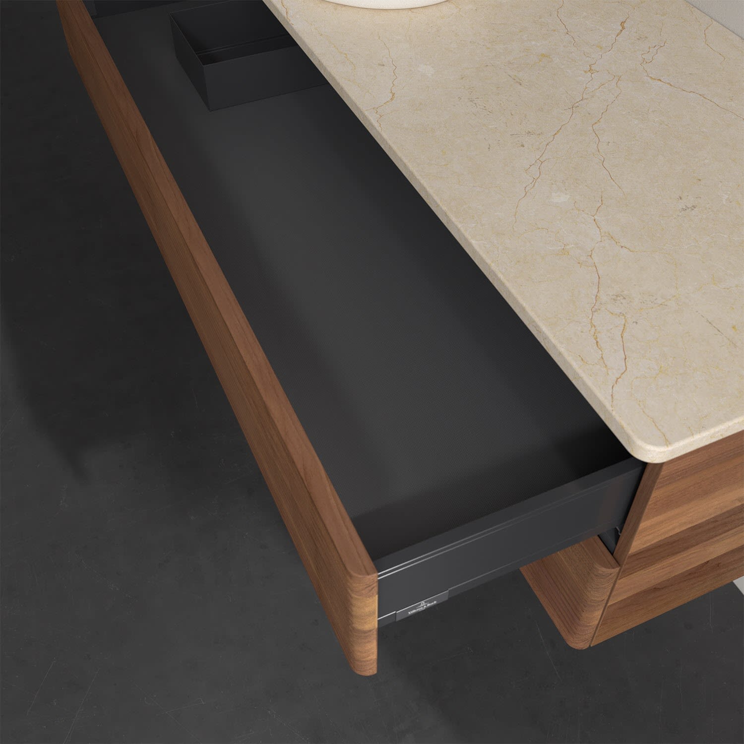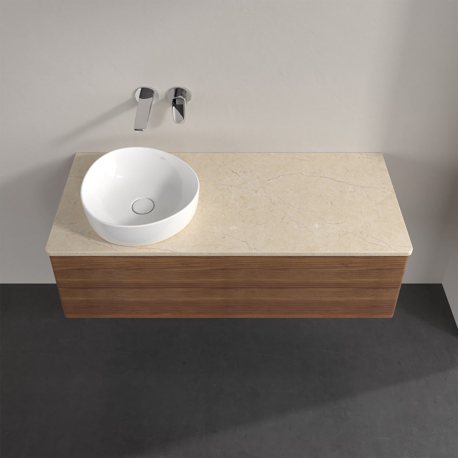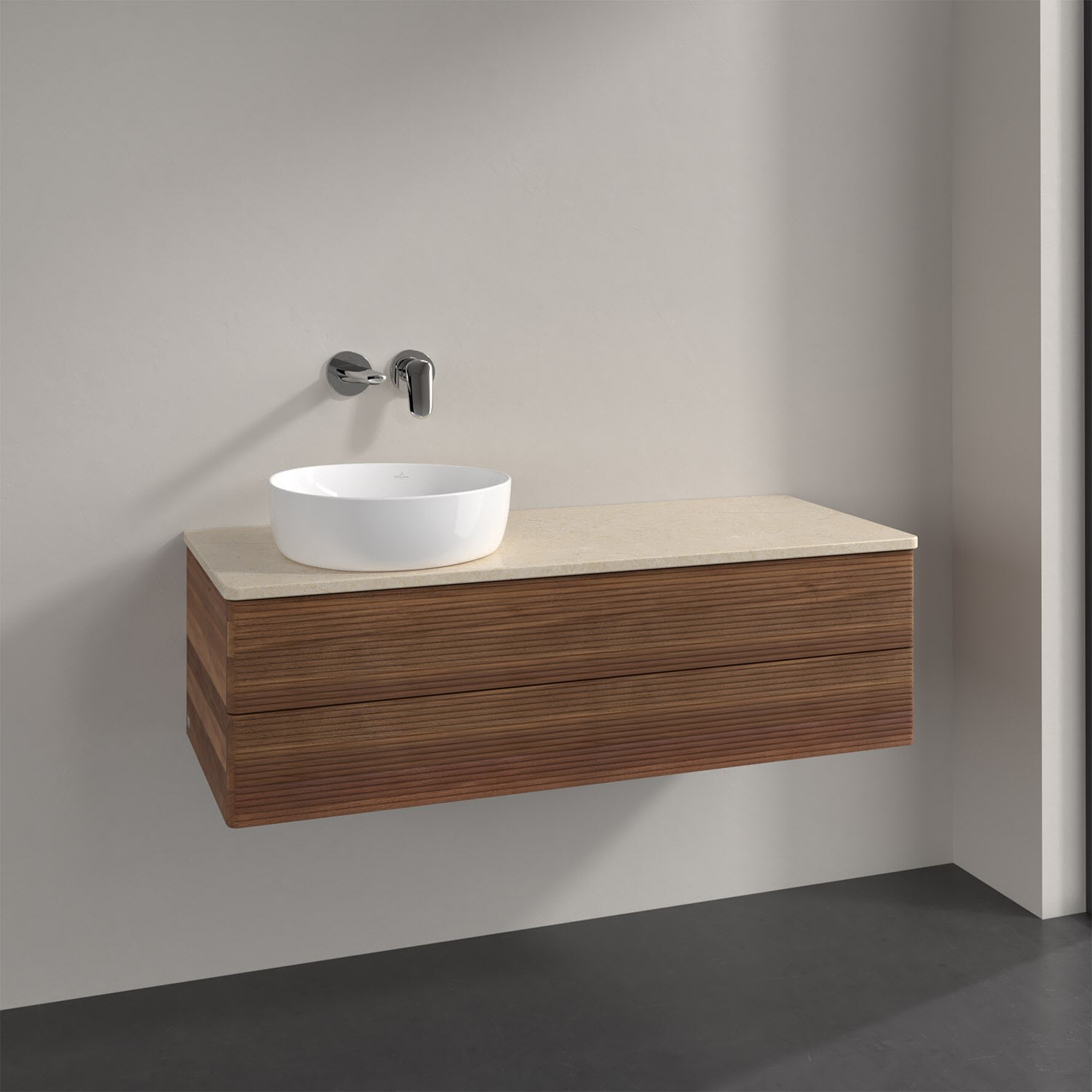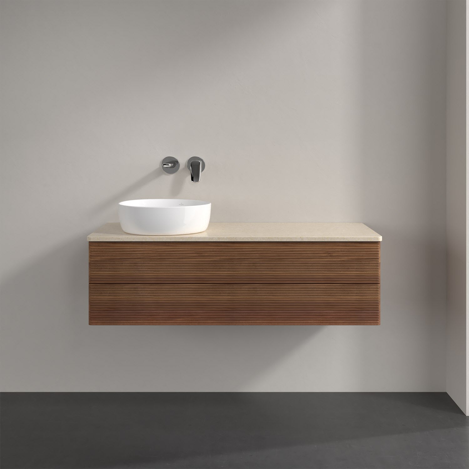 Villeroy & Boch Antao Waschbeckenunterschrank, 120 x 19 cm, 2 Auszüge, Fronten mit Struktur, ohne Hahnloch, für Waschtisch links