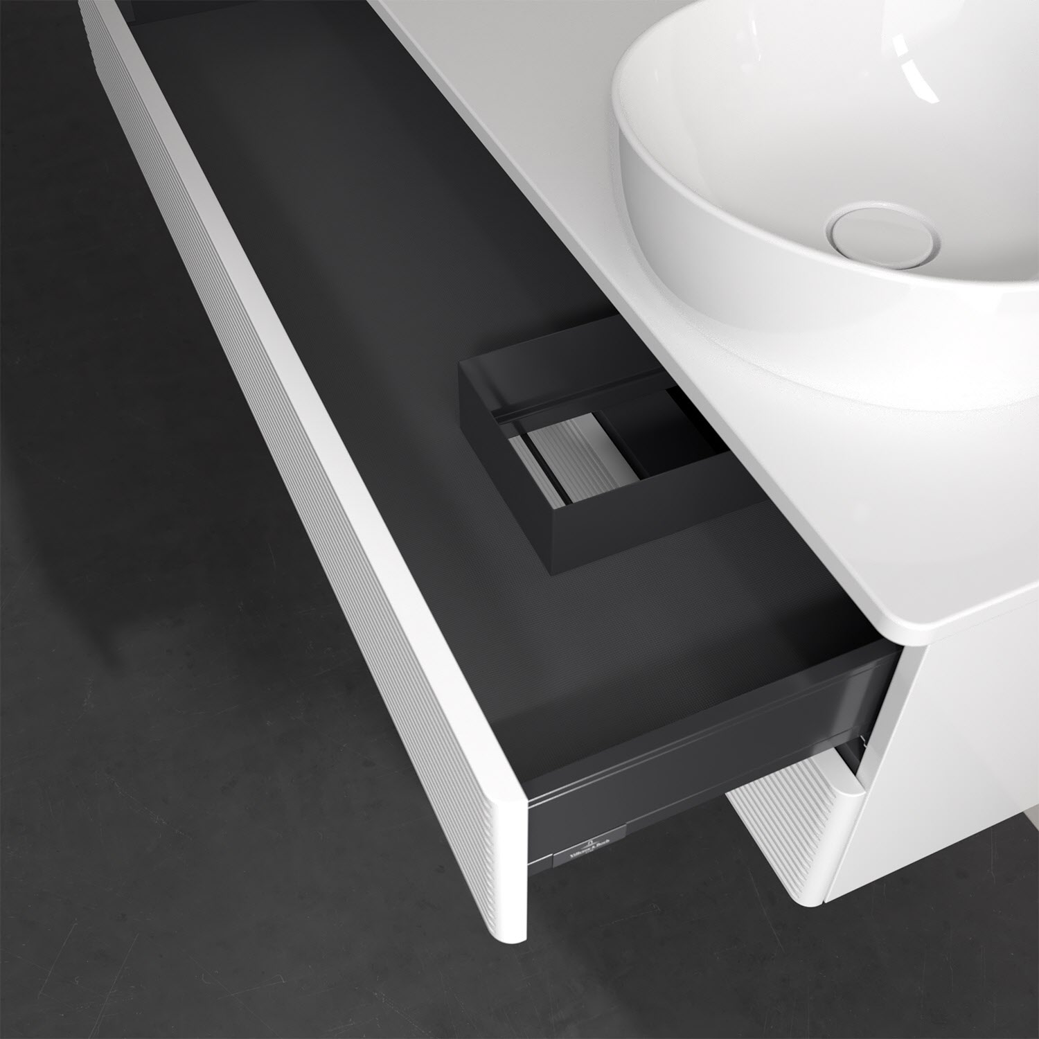 - kein Umfallen oder Verrutschen von Pflegeprodukten in den Schubladen dank rutschhemmendem Boden