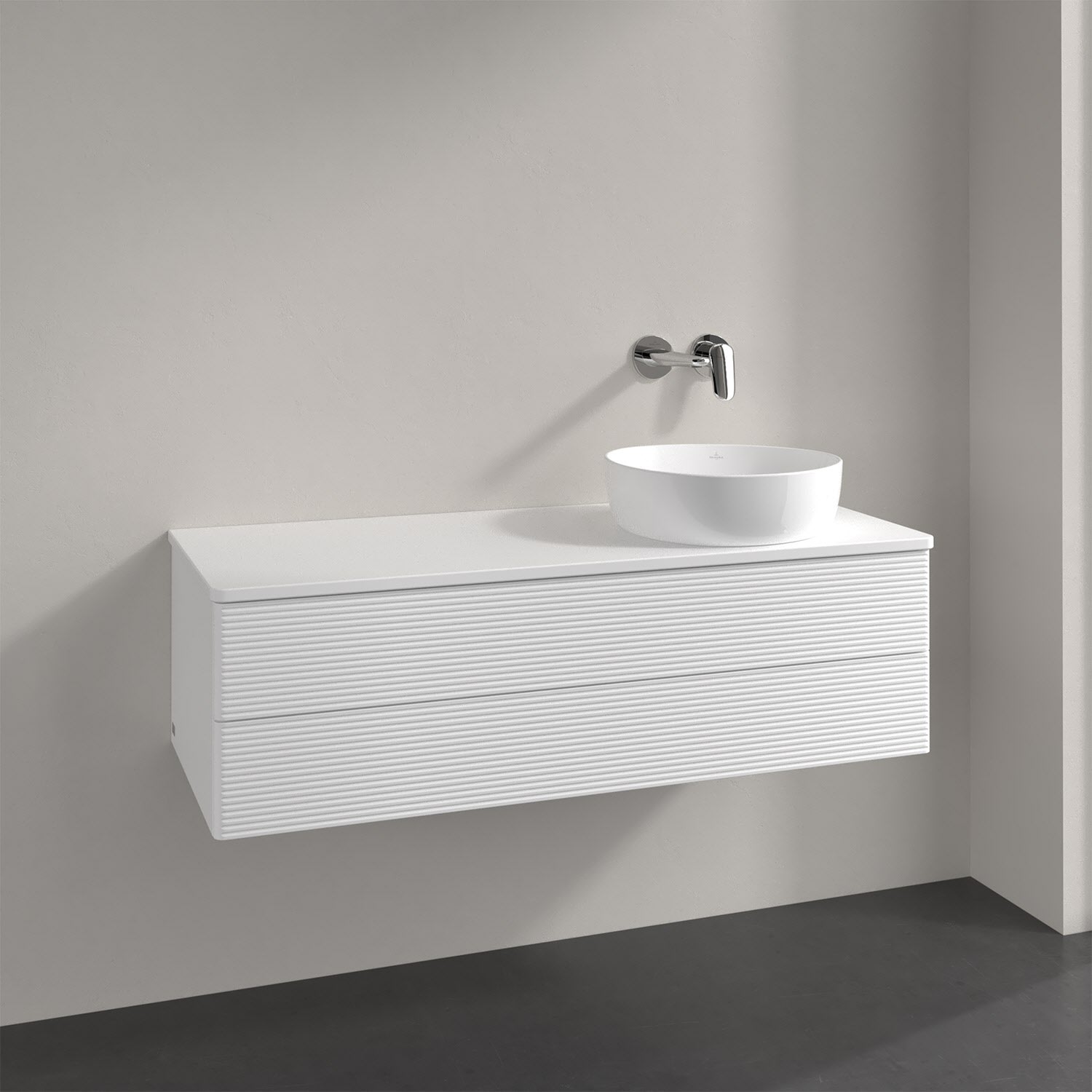 Villeroy & Boch Antao Waschbeckenunterschrank, 120 x 19 cm, 2 Auszüge, Fronten mit Struktur, ohne Hahnloch, für Waschtisch rechts