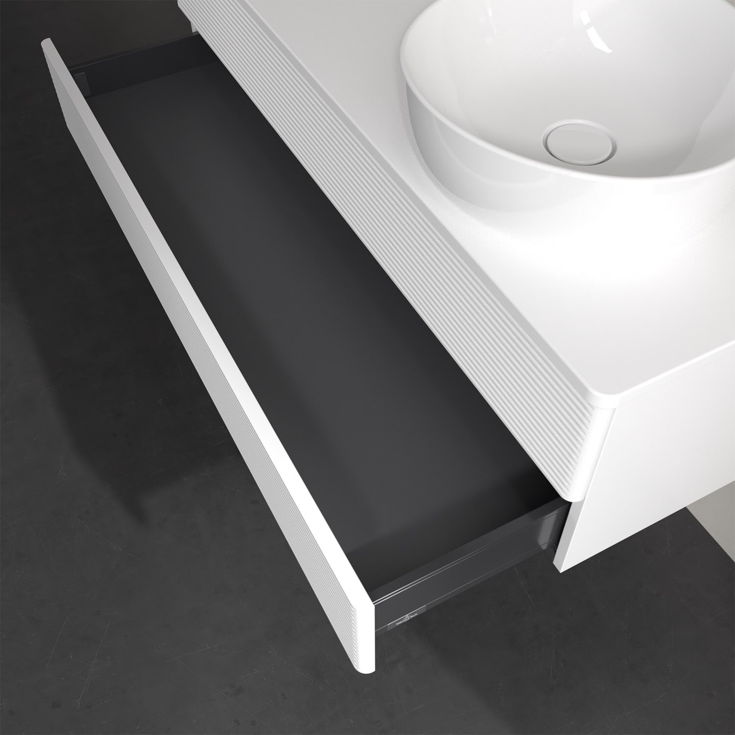 - kein Umfallen oder Verrutschen von Pflegeprodukten in den Schubladen dank rutschhemmendem Boden