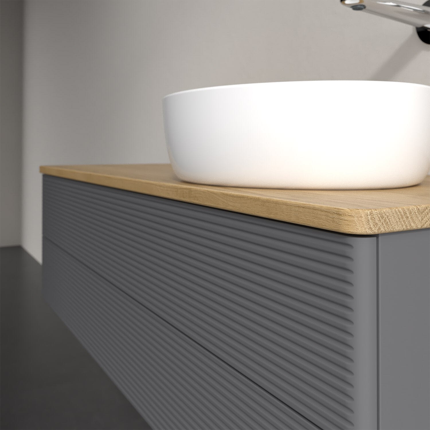 Der wandhängende Antao Waschtischunterschrank von Villeroy & Boch bietet nicht nur jede Menge Stauraum – er ist dank seines naturinspirierten Designs mit seinen abgerundeten Kanten auch noch besonders stilvoll und schafft eine gemütliche Atmosphäre im Badezimmer. Auf der Waschtischplatte bietet sich seitlich des Waschtischs viel Platz für Zahnbürstenbecher oder Seifenspender. Zwei geräumige Auszüge bieten viel Platz, um alles Notwendige zu verstauen und Ordnung zu halten. Öffnen lassen sie sich durch leichten Druck auf die strukturierte Front. Dank Vollauszug hat man immer alles im Blick und der Antirutschboden verhindert ein Umfallen oder Verrutschen der Gegenstände. Einfach clever! Für eine besonders leichte Pflege sorgt die mehrschichtig deckend lackierte Oberfläche. Bei der Ausführung in Massivholz wird dank des verarbeiteten Massivholzes jedes Möbel zu einem Unikat, das sich durch das lebendige Naturmaterial durch seine einzigartige Struktur und Maserung auszeichnet.