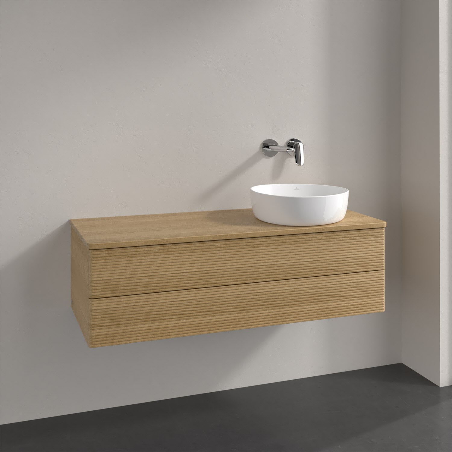 Villeroy & Boch Antao Waschbeckenunterschrank, 120 x 19 cm, 2 Auszüge, Fronten mit Struktur, ohne Hahnloch, für Waschtisch rechts