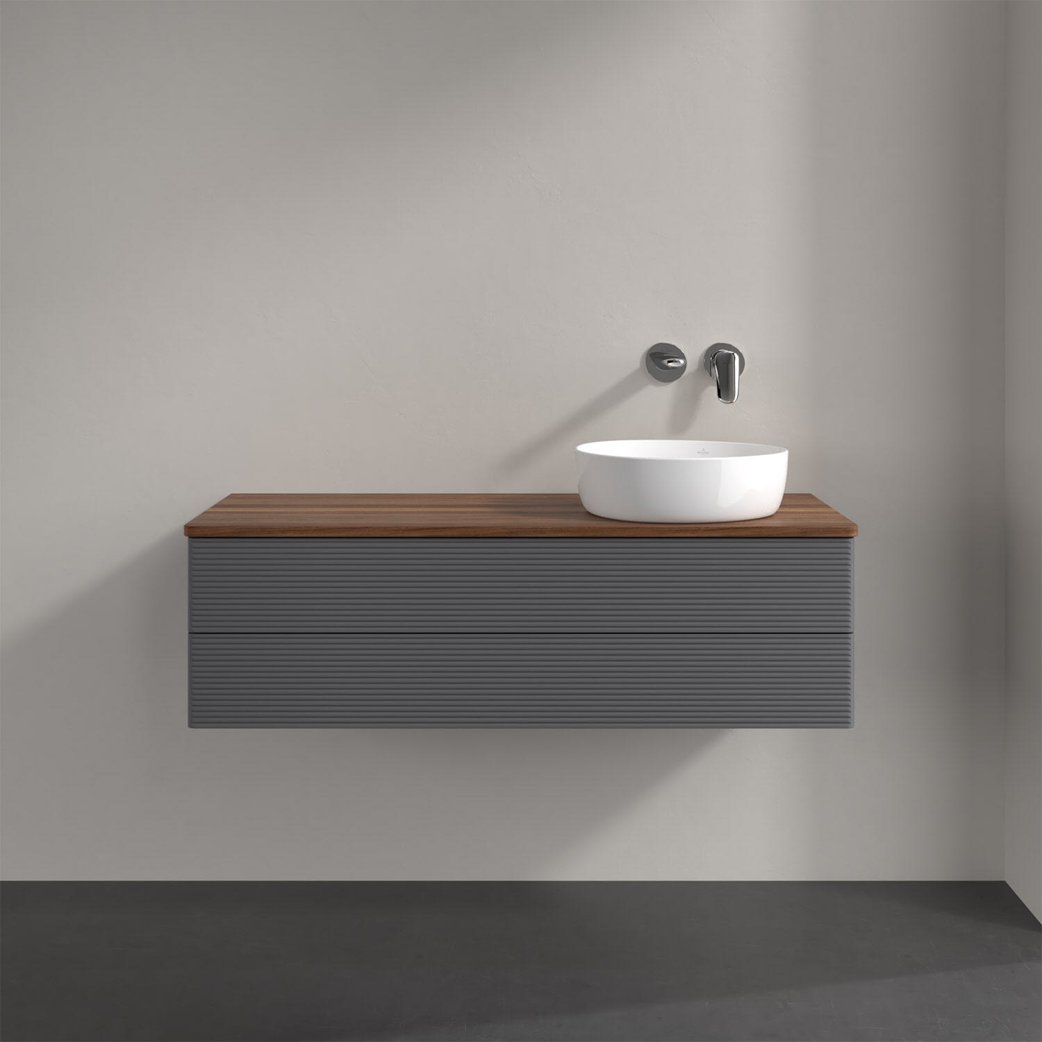 Villeroy & Boch Antao Waschbeckenunterschrank, 120 x 19 cm, 2 Auszüge, Fronten mit Struktur, ohne Hahnloch, für Waschtisch rechts
