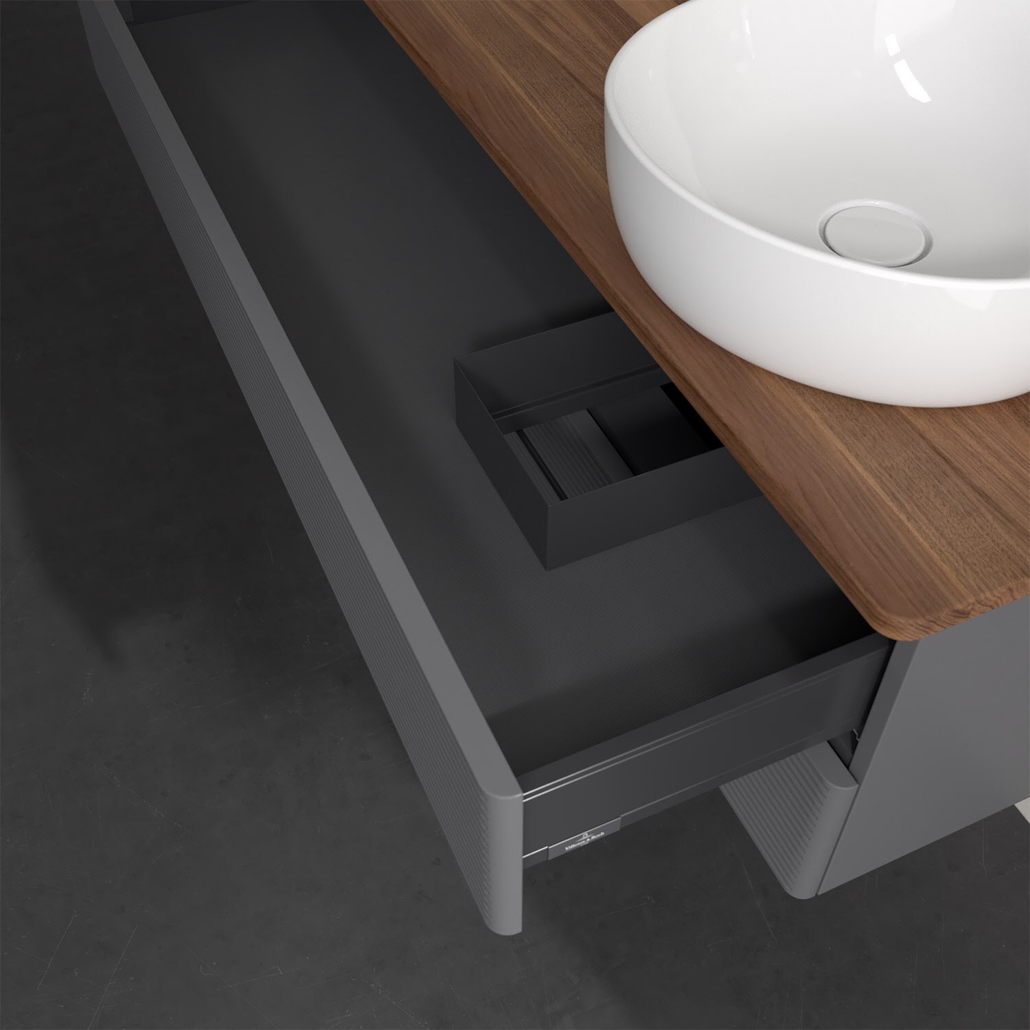 Der wandhängende Antao Waschtischunterschrank von Villeroy & Boch bietet nicht nur jede Menge Stauraum – er ist dank seines naturinspirierten Designs mit seinen abgerundeten Kanten auch noch besonders stilvoll und schafft eine gemütliche Atmosphäre im Badezimmer. Auf der Waschtischplatte bietet sich seitlich des Waschtischs viel Platz für Zahnbürstenbecher oder Seifenspender. Zwei geräumige Auszüge bieten viel Platz, um alles Notwendige zu verstauen und Ordnung zu halten. Öffnen lassen sie sich durch leichten Druck auf die strukturierte Front. Dank Vollauszug hat man immer alles im Blick und der Antirutschboden verhindert ein Umfallen oder Verrutschen der Gegenstände. Einfach clever! Für eine besonders leichte Pflege sorgt die mehrschichtig deckend lackierte Oberfläche. Bei der Ausführung in Massivholz wird dank des verarbeiteten Massivholzes jedes Möbel zu einem Unikat, das sich durch das lebendige Naturmaterial durch seine einzigartige Struktur und Maserung auszeichnet.