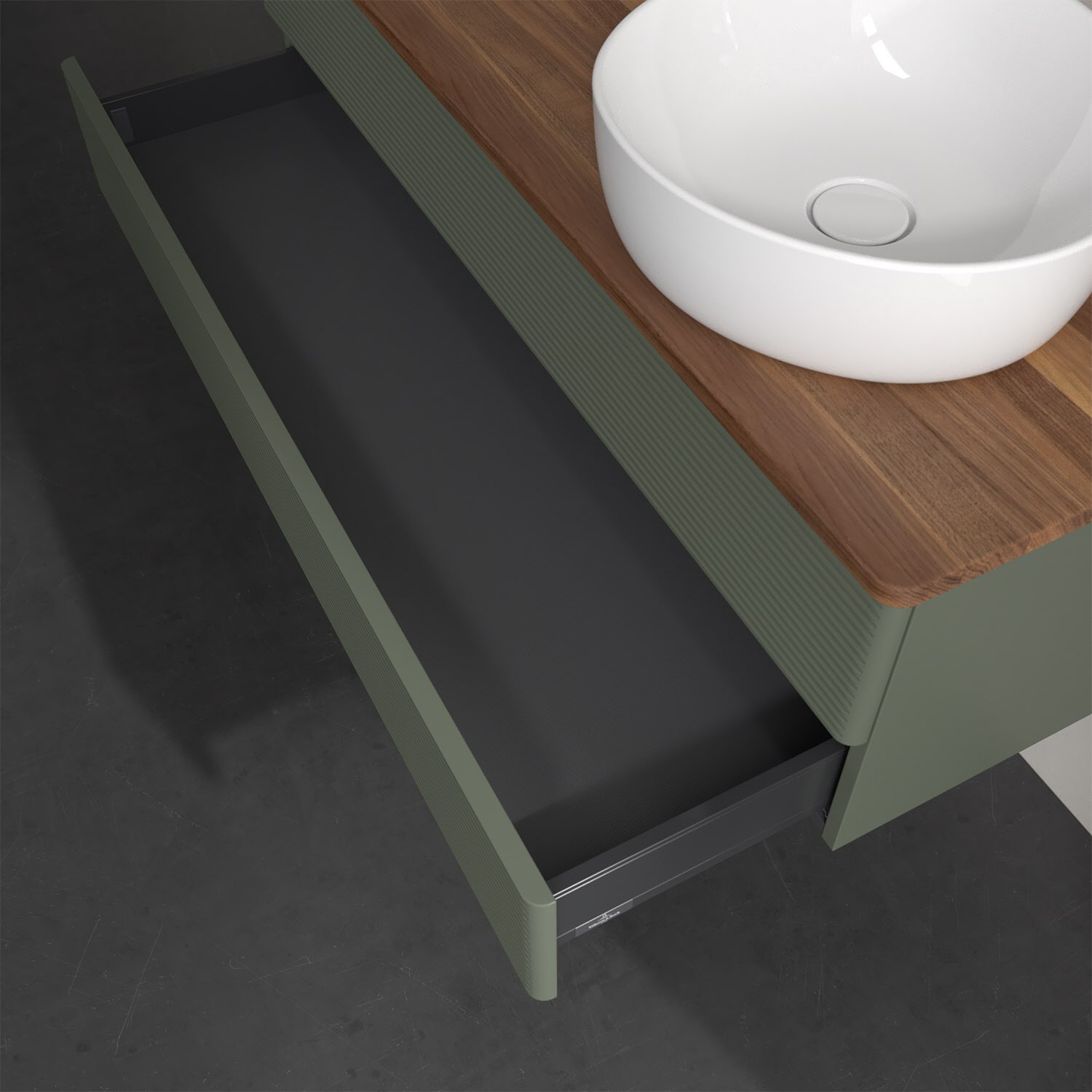 - kein Umfallen oder Verrutschen von Pflegeprodukten in den Schubladen dank rutschhemmendem Boden