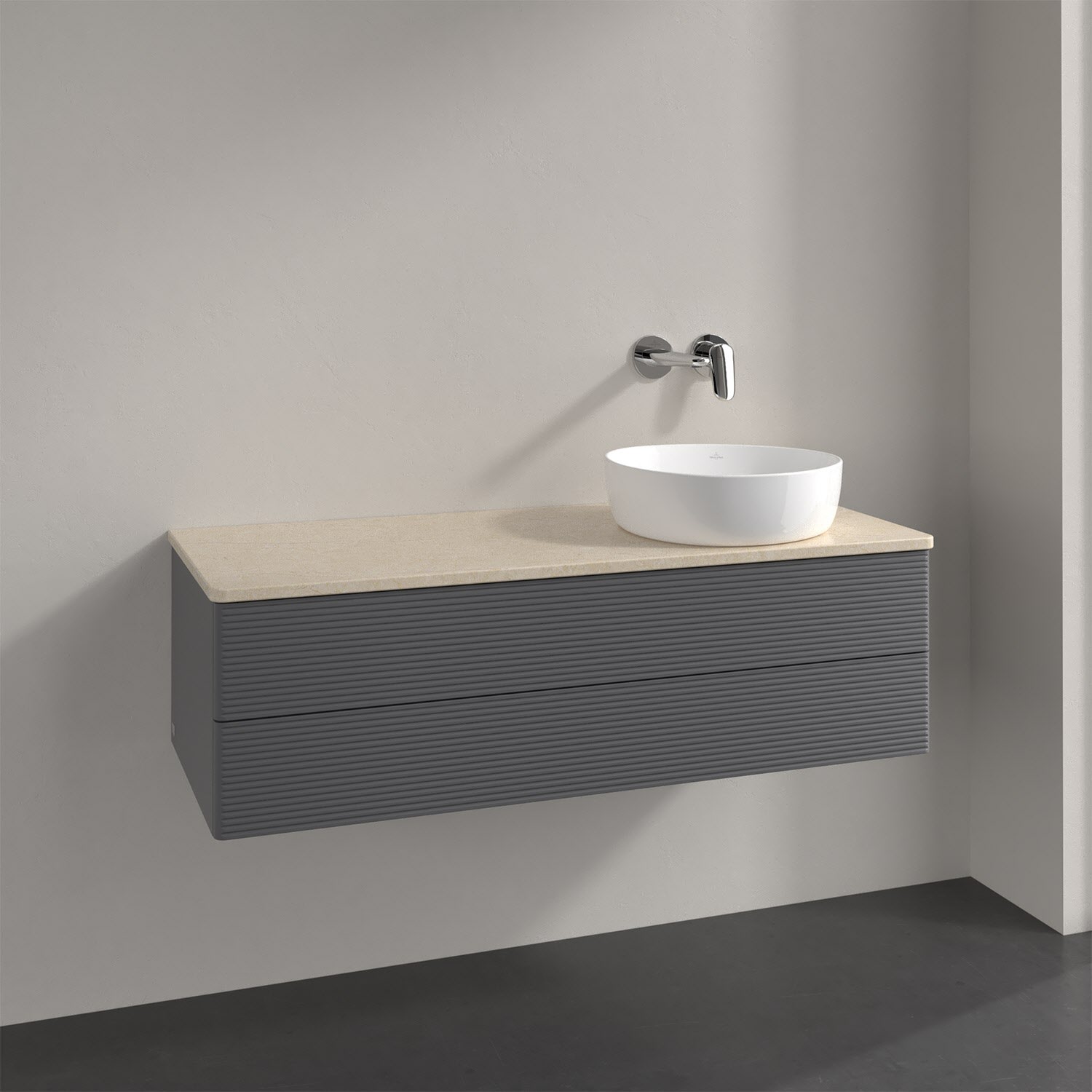 Villeroy & Boch Antao Waschbeckenunterschrank, 120 x 19 cm, 2 Auszüge, Fronten mit Struktur, ohne Hahnloch, für Waschtisch rechts