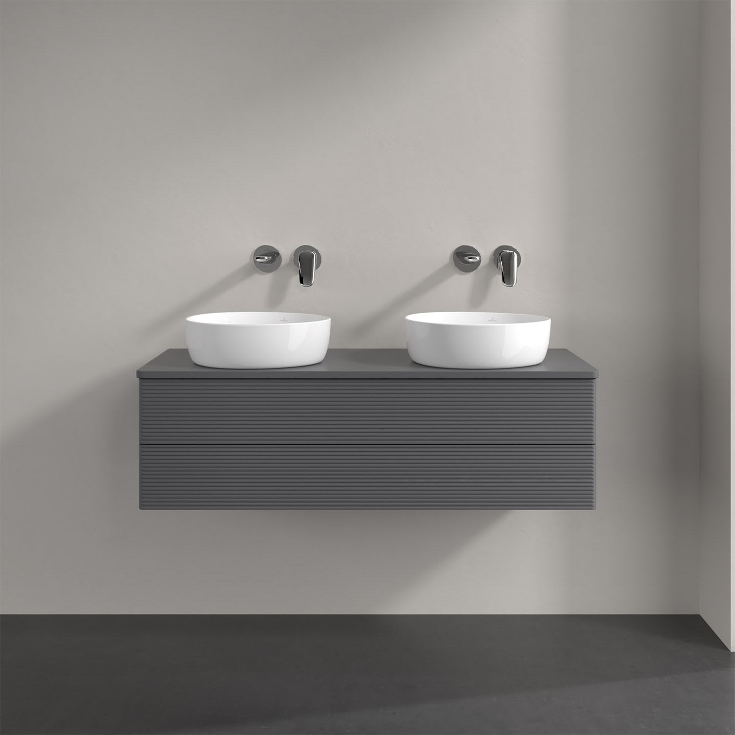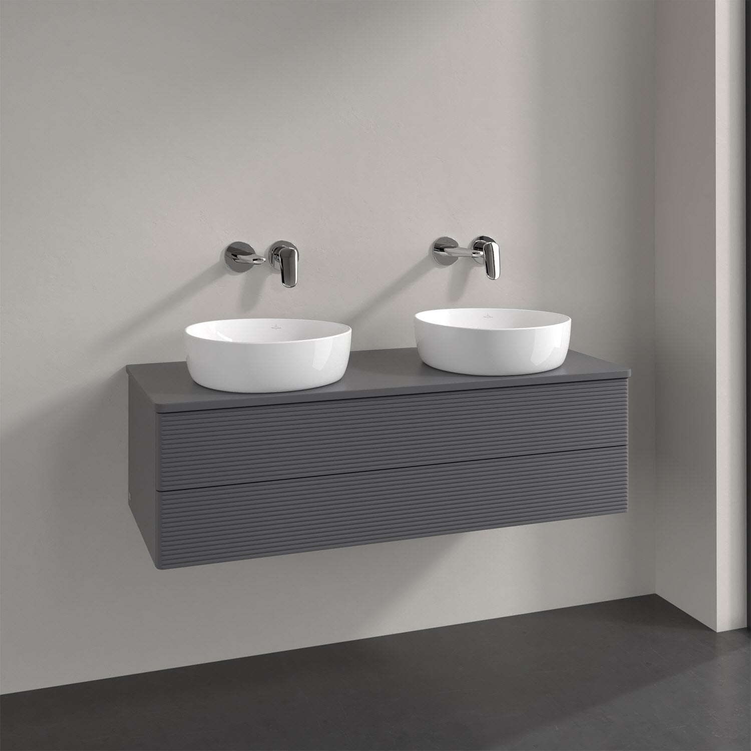 Villeroy & Boch Antao Waschbeckenunterschrank, 120 x 19 cm, 2 Auszüge, Fronten mit Struktur, ohne Hahnloch, für Waschtisch links und rechts